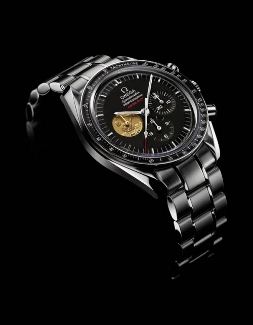 Двое часов OMEGA Speedmaster Professional Moonwatch лимитированной серии Apollo 11 “40th Anniversary” посвящены этому приключению: одни из нержавеющей стали и чистого серебра (7969 штук); другие из платины и 18-каратного желтого золота (69 штук). Лимитированная серия часов из нержавеющей стали Обладающие своей индивидуальностью часы усилены калибром OMEGA 1861, принадлежащим к семейству калибров 321, который использовался в первоначальном варианте часов Speedmaster Professional Moonwatch. Корпус из нержавеющей стали закреплен на браслете из нержавеющей стали, который был усовершенствован запатентованной системой “screw and pin” (винта и штифта) OMEGA. Черный циферблат также напоминает Moonwatch, но имеет некоторые существенные отличия. Небольшой счетчик секунд (нижняя круговая шкала) имеет медальон с адаптацией знаменитой эмблемы Apollo 11: орел спускается на лунную поверхность, держа в когтях оливковую ветвь мира. На расстоянии, далеко над горизонтом, видна земля. Любопытно, что дизайн эмблемы делал Майкл Коллинз, который оставался в капсуле “Аполлон 11” в качестве пилота командного модуля, в то время как его коллеги Армстронг и Олдрин были в Лунном Модуле и на луне. Часовая, минутная и секундная с красным наконечником стрелки хронографа покрыты раствором Super-LumiNova. Минутная и часовая стрелки хронографа белого цвета. Кроме того, есть небольшая отшлифованная секундная стрелка с родиевым покрытием в красивом рельефе слегка утопленного медальона на секундомере. Один маленький шаг Под словами “OMEGA Speedmaster PROFESSIONAL” на циферблате красным указана легенда 02:56 GMT – точное время, когда Нейл Армстронг сделал свой «один маленький шаг» на луну. Циферблат лимитированной серии 40th Anniversary защищен хезалитом, тем же прочным, небьющимся акриловым стеклом, которое было на первых часах Moonwatch. Хезалит идеально подходит для применения в космосе: он не может разбиться, послав потенциально опасные осколки в окружающую среду с низкой гравитацией. Внутри хезалитового стекла выгравирован небольшой характерный памятный логотип OMEGA. На задней крышке корпуса выгравирована эмблема с орлом «Аполлон 11» вместе со словами «ПЕРВЫЕ ЧАСЫ, ПОБЫВАВШИЕ НА ЛУНЕ» (“THE FIRST WATCH WORN ON THE MOON”), c номером ограниченного выпуска (0000/7969) и датой «21 июля 1969», когда Армстронг и Олдрин впервые ступили на поверхность луны в 02:56, время, отпечатанное на циферблате. Лимитированная серия OMEGA Speedmaster Professional Moonwatch Apollo 11 “40th Anniversary” будет находиться в черной подарочной коробке, в которой также имеется серебряная медаль 42 мм (того же диаметра, что и часы) с гравировкой эмблемы космической миссии сбоку со словами «APOLLO 11, 40th ANNIVERSARY». На обратной стороне медали выгравированы фразы «THE EAGLE HAS LANDED»; «LAUNCHED JULY 16 1969»; «LANDED JULY 20, 1969»; и «RETURNED, JULY 24, 1969», а также название и логотип OMEGA. В подарочной коробке также есть сертификат подлинности и конверт, содержащий черную полировочную ткань с напечатанной информацией в ознаменование исторического космического полета. Лимитированная серия из платины Платиновая версия часов OMEGA Speedmaster Professional Moonwatch Apollo 11 “40th Anniversary” также выпускается в ограниченном количестве 69 штук. Корпус и браслет технологии “screw and pin” сделаны из платины, а медальон на маленьком счетчике секунд сделан из 18-каратного желтого золота, также как и сами секундные стрелки. Часовая и минутная стрелки также как отметки на 30 минутах и 12 часах выполнены из платины. Этот 
