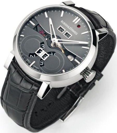 И вот в 2012 году бренд решил расширить свою деятельность, и при тесном сотрудничестве с известным производителем измерителей времени Martin Braun были созданы первые наручные часы Buben & Zorweg - One Perpetual Calendar. Новинка функционирует на базе усовершенствованного производственного калибра BZ01-MHO, модифицированного функцией вечного календаря. Уникальный механизм с ручным заводом, собранный на 58 камнях, состоит из 312 компонентов. Запас хода калибра с балансовой частотой в 18 000 пк/ч составляет 156 часов. Что необычно в новом механизме – это его нестандартный большой баланс, кремниевый анкер, швейцарский спусковой механизм и анкерное колесо, которые выполнены по стандарту Женевского клейма и украшены изысканным орнаментом Moulure.