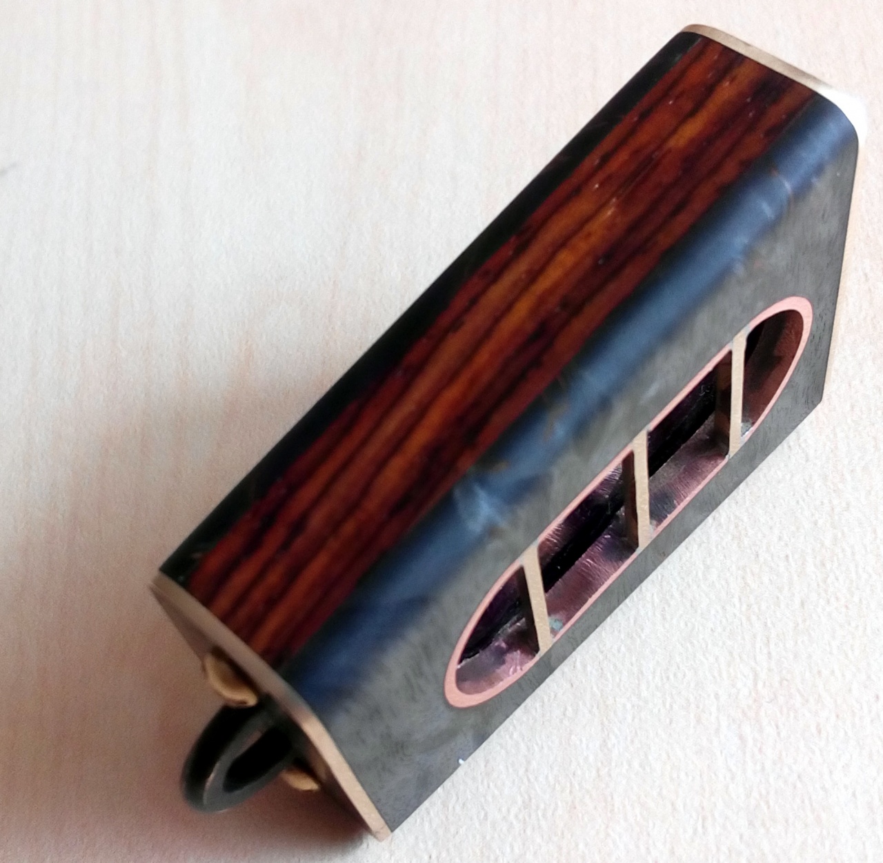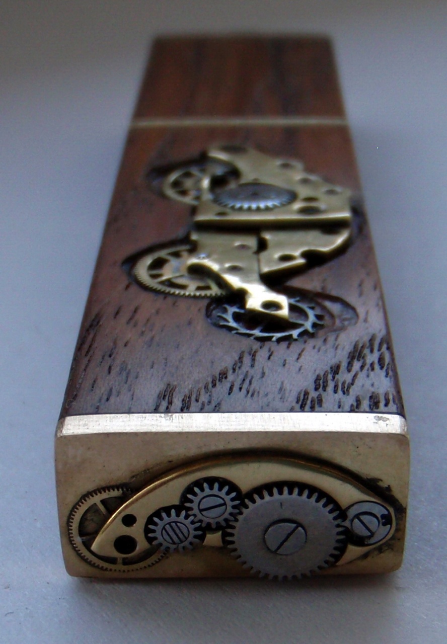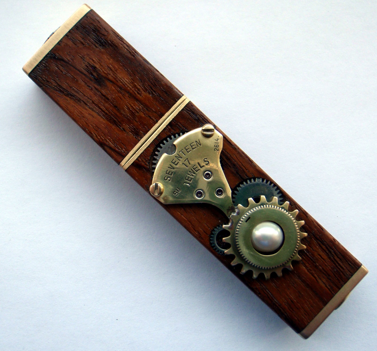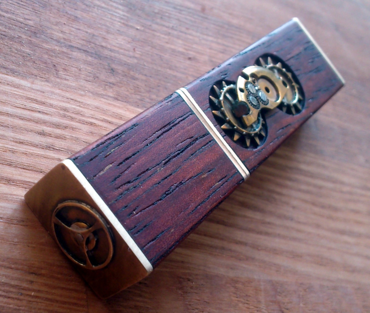 Добавлю кое-что... Начинка от братьев-китайцев, светодиодный фонарик с аккумулятором и солнечной батарейкой. Корпус из какого-то стабилизированного дерева, обрезок которого мне прислали в подарок. Боковые вставки из кокоболо. Остальное - латунь, останки часов, патинирование в парах аммиака. Вложение 967142 Вложение 967143 Вложение 967144 Вложение 967145 |