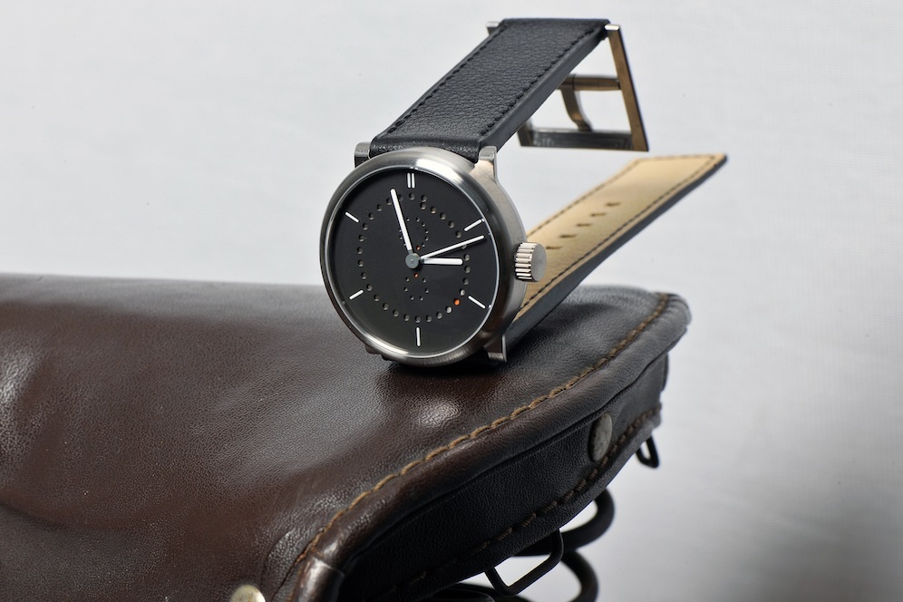 Новинка имеет круглый титановый корпус, диаметром 42 или 39 мм, толщиной 11 мм, водонепроницаемый до 50 метров. Сапфировое стекло с антибликовым покрытием защищает циферблат с часовыми индексами и стрелками, выполненный в различных цветах (возможен их подбор по желанию владельца).
