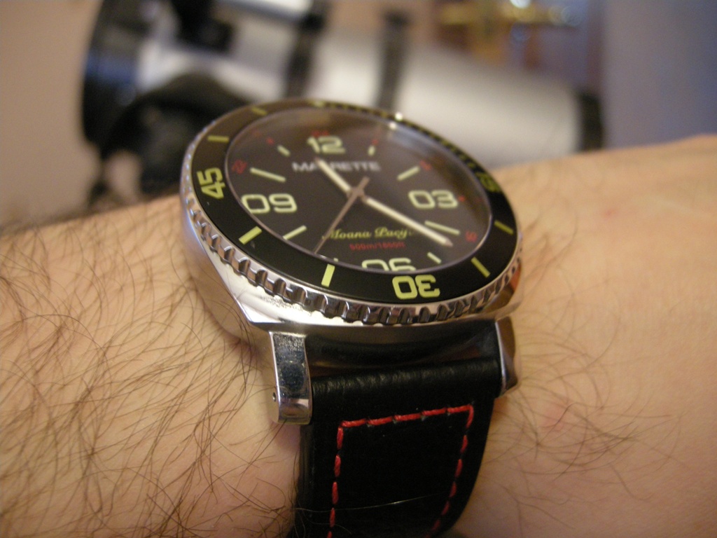 Отличные часы MAGRETTE Regattare. Ремешок толстый и мягкий- потрясающий. Каучук так же очень мягкий и приятный. На руке сидят отменно. Бакля солидная. Сочетание чёрного и красного-классика, беспроигрышный вариант. Номер лимитки на задней крышке виден хорошо, с чего levsha решил, что там только ручкой написано? Коробка как коробка-фанерная. По мне так лучше чем дерматиновая у Штейнхарта. Единственный минус часов-минутных рисок нет, выставлять время не удобно. Очевидно это плата за интересный дизайн.