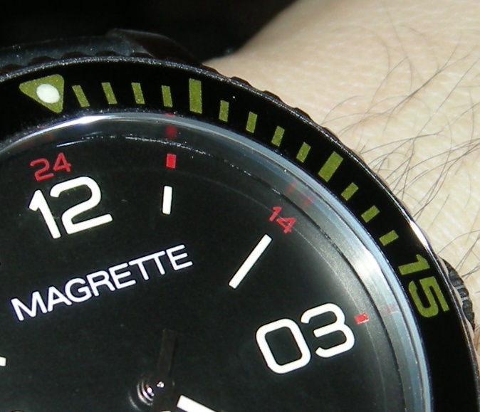 Четыре месяца владения Магреттой полжительных эмоций не добавили. Часы спешат , как тот паровоз(который вперед летит), 40 -50 сек в сутки. Обращение в мастерскую( специально, блин, ездил в Кемерово - день убил), восторженные возгласы мастера, колдовство с приборчиком на которм ход регулируют , скорость заметно не умерили. Утро начинается с корректировки хода, а учитывая отсутствие стоп - секунды, занятие еще то. А последним гвоздем ,убившим уже почти равнодушное отношение к 51 экземпляру ограниченной серии, стала царапина на "сапфировом" стекле появившаяся после скользящего контакта с зубами оппонента. Я бы понял если - бы стекло разбилось. Да и мелкие царапины на безеле ,возникшие от обычной носки ( я всегда снимаю часы если занимаюсь какой либо работой)тоже не добавляют уважения к марке Magrette.
