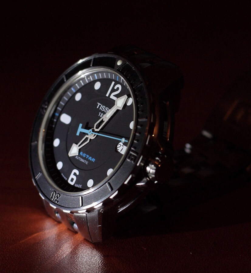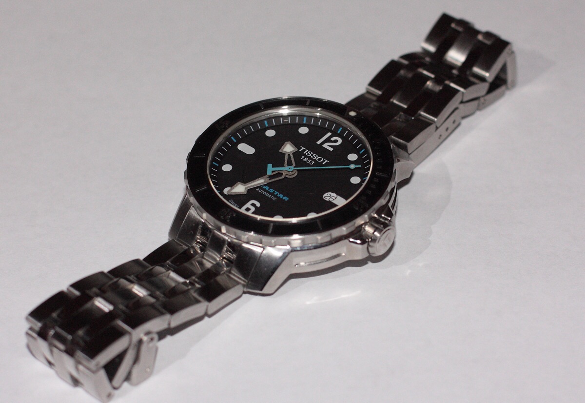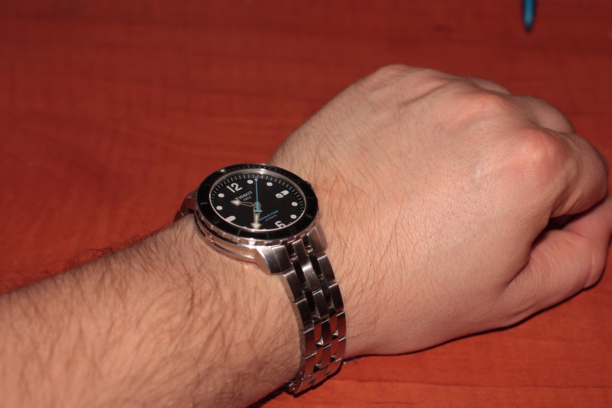 Дабы не плодить лишних тем подниму существующую. Приобрел сабж неделю назад. Соотвественно неделю ношу и не снимаю. Изначально целился на STEINHART OCEAN One Premium Blue http://www.steinhartwatches.de/en/OC...-Blue,902.html но из-за курсов валют не успел. С другой стороны вроде как зима и самое время покупать дайвер на лето :). Для себя сразу решил, что цифер и безель будут синими, ну и механика. Изначально хотел гидру от лонжина, но отпугнул крашеный алюминиевый безель - что-то не то :confused: К тому же имею обычный конквест черного цвета на механике и браслете (А ведь долго уговаривал себя купить конквест СИНИЙ, но показалось что цвет цифера все же темноват). Покупал здесь на форуме, за что хочу поблагодарить Classic312 (http://forum.watch.ru/member.php?u=118221). А теперь перейдем непосредственно к часам. Вообще за свое короткое часовое хобби (с 2009)) Tissot попали ко мне впервые. Неожиданно понравился дизайн коробки. Нет, серьезно :) Лонжин конечно побогаче выглядит, но как-то без изюминки, а ситизен и штайн вообще утилитарно. Ну да это не главное - ведь содержание важнее! Часы достаточно технологичные для своей категории: 2824-2 и гелиевый клапан. Диаметр 42 мм, легли на мое запястье очень хорошо (17 см), толщина 11,5 мм. Тут сделаю небольшое отступление: предыдущий дайвер был оранжевый Orient M-force на браслете, нравился всем (и точностью и индикатором запаса хода и веселым оранжевым цифером, который идеально подходил под оранжевую рубашку :)). Однако диаметр часов составлял 46 мм и выглядел на моем запястье слишком массивно http://forum.watch.ru/showpost.php?p...&postcount=178 Относил их все лето и продал по осени. Тогда же понял что хочу синий дайвер и диаметром не больше 44 (а если еще и керамический безель, так вообще два сразу заверните :))