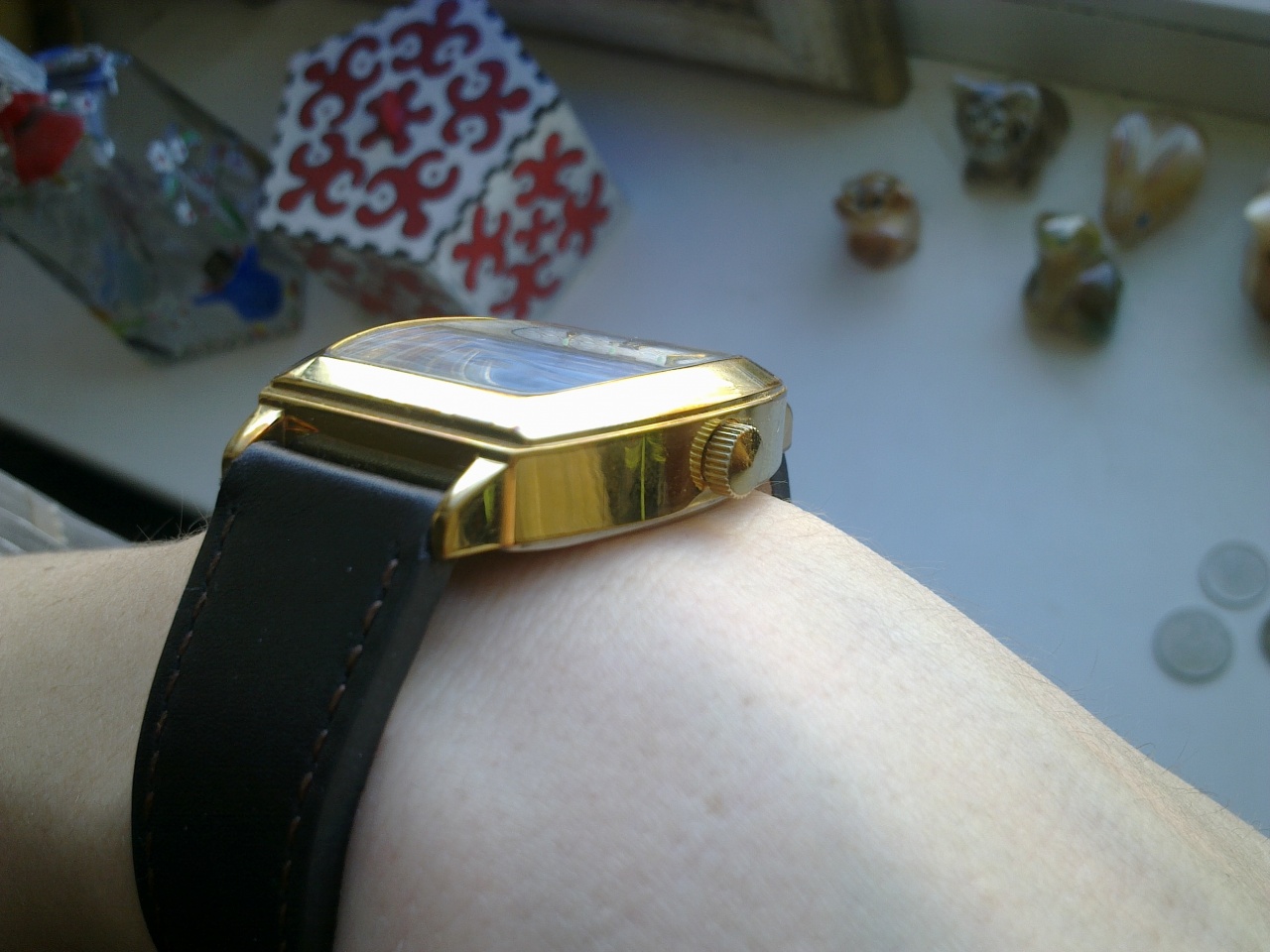 Вложение 419016 Есть еще у меня такие вот часы. Это из серии Престиж голд (голда то есть :D) Вложение 419025 Вложение 419026 Вложение 419027 Вложение 419028 Вложение 419029 Вложение 419030 Вложение 419031 По дизайну часы решены неплохо, хотя я бы хотел модель с более темным цифером, но ее тогда не было. Золотое покрытие не производит впечатление надежного. Думаю, что там микрона 3 от силы. Часам 1 год, я ношу их не часто (много их :)), но есть небольшие потертости. Ходят хорошо и даже есть прозрачная задняя крышка и золоченые (!!!) винты. :eek: Да, ремень я поменял сразу. Стоял, в принципе, неплохой Штайлер, но он был "такого светло коричневого цвета. Я не люблю этот цвет" (С) Сэр Генри. :D Пришлось поменять на более толстый и темный :cool: Вилсон. Касательно фирмы G.GERLACH. Вот их сайт: http://gerlach.org.pl У меня часы ORP DZIK. Я делал подробный обзор по ним http://forum.watch.ru/showthread.php?t=143057. Прошло полгода, я их периодически надеваю. Из недостатков: часы периодически останавливаются. Просто так. Встряхнешь, опять пошли. :confused: Стопсекунда теперь уже практически не работает (не особо, правда была нужна). Даже не знаю, кто в этом виноват: я, польская сборка, китайский механизм или Путин. :D Ходят по прежнему точно +10. |