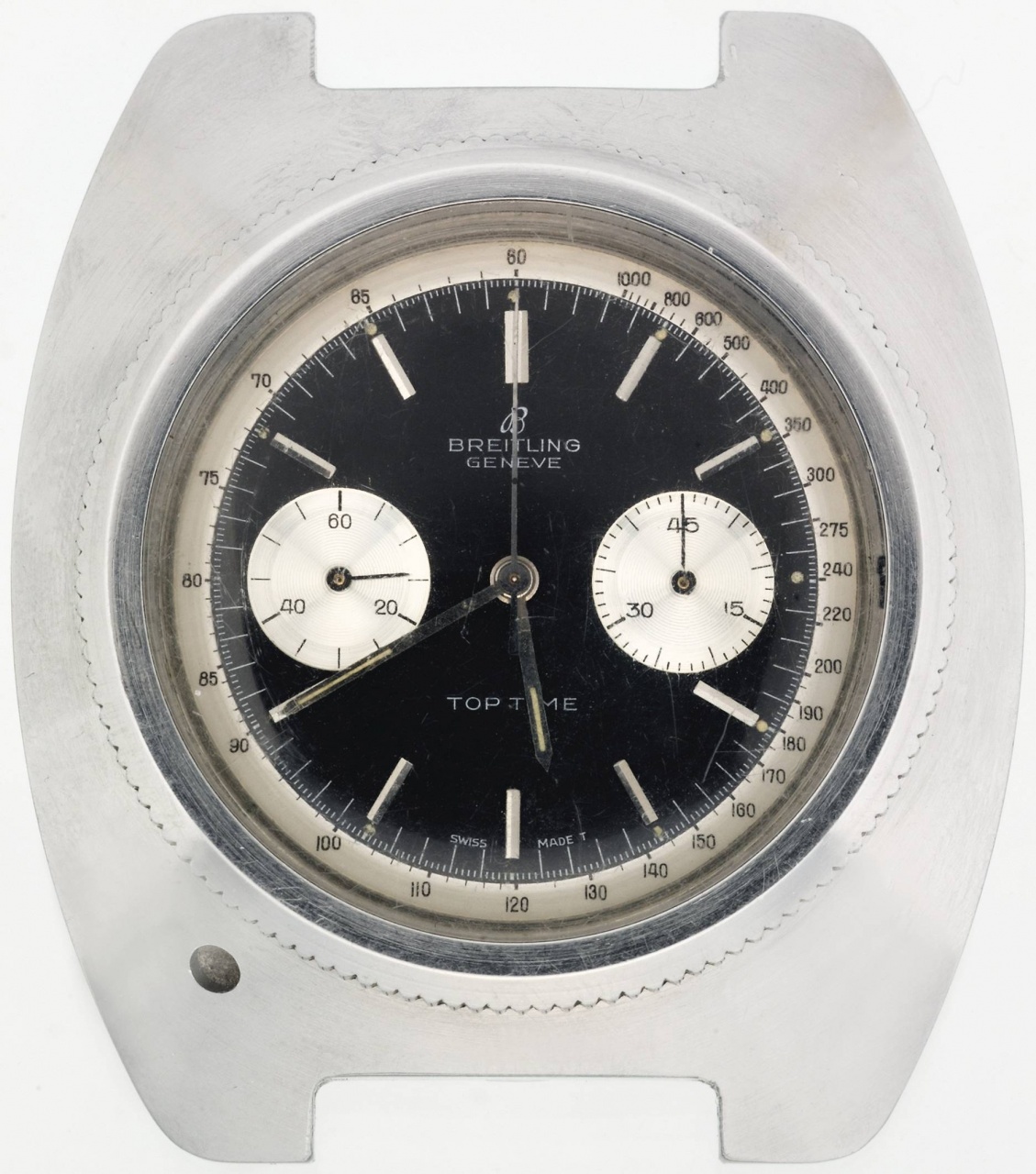 Во время аукциона Pop Culture 26 июня, ценник этих часов был значительно выше. Модель, известная, как Breitling Top Time, 1965 года выпуска, была самыми первыми модифицированными часами Джеймса Бонда. Часы были оборудованы «счетчиком Гейгера», для того чтобы обнаружить радиацию во время охоты Бонда на две украденные атомные бомбы. И это не просто модификация, эти часы — часть сюжета, по которому они выступают в качестве секретного приспособления агента. Ах да, еще по сюжету они обладали водонепроницаемостью. И Бонд успешно пользовался ими ныряя под воду темной ночью.