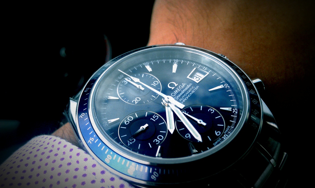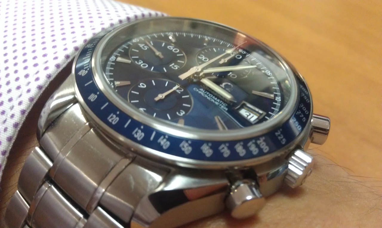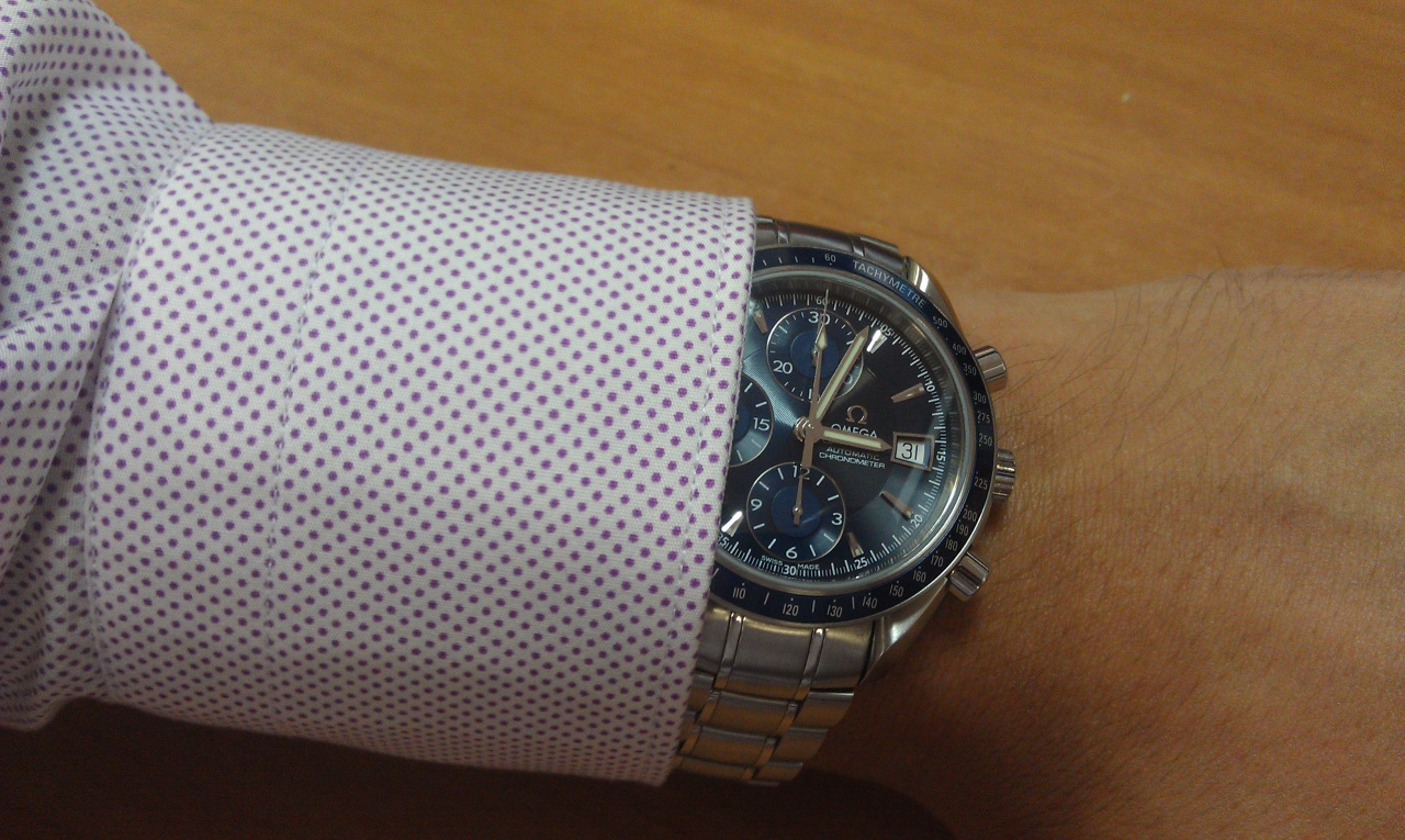 Определился с моделью, это Speedmaster Day-Date. Есть два цвета - синий и черный. Какой цвет, на ваш взгляд, смотрится более элегантно, более по - деловому под строгий прикид?