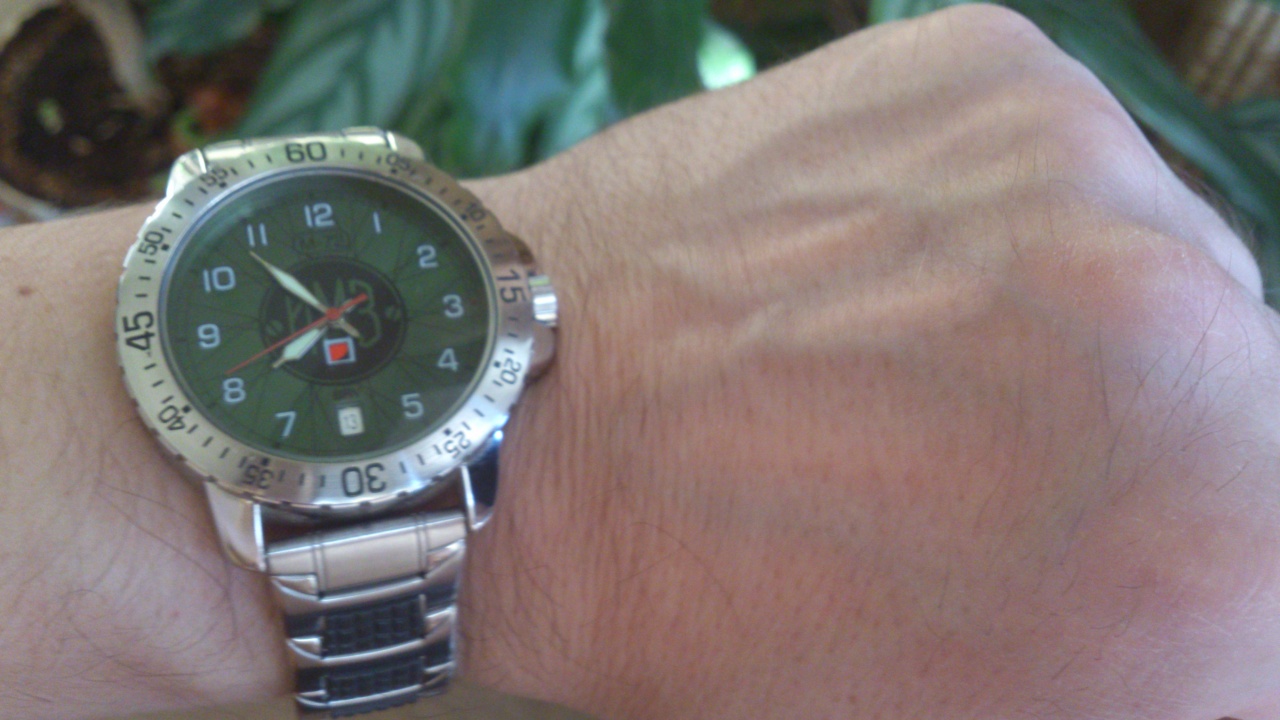 http://img-fotki.yandex.ru/get/5627/...46775141_L.jpg Начну с предыстории, как появились эти часы. Собственно я являюсь владельцем мотоцикла Урал модели "Волк". Когда начал делать часы с символикой ИМЗ, то "братья по оружию", которые владеют аналогичной техникой производства Киевского Мотоциклетного завода, просили сделать модель с символикой мотоцикла "Днепр". Что же сказано - сделано. Не мудрствуя лукаво за основу был взят циферблат первой модели часов ИМЗ в корпусе 06. На нем расположилися эмблема завода КМЗ в верхней части. Внизу надпись Днепр на русском и экспортном исполнении (Dnepr). Для информации, надпись Днiпро появилась на продукции КМЗ уже позже - в постсоветское время. Получился такой вот "циклоп" с одним угловатым глазом из эмблемы вверху и широким оскалом из надписи внизу ;-) http://img-fotki.yandex.ru/get/9811/..._ad2bbde_L.jpg Если Вы обратите внимание, то родные Амфибийные стрелки заменены Командирскими. На мой взгляд при относительно небольшом размере циферблата часовая стрелка без "наконечника" приходится больше "к столу" или к месту. Хоть и теряется классический канон Амфибии, при этом часы смотрятся более стильно и утонченно. Задняя крышка была пересмотрена с учетом модели КМЗ. На гравировке расположился мотоцикл нового модельного ряда (после 60-х гг.), который впервые помимо цифрового оформления стал носить собственное гордое имя "Днепр". http://img-fotki.yandex.ru/get/9834/...fd839e1e_L.jpg Сейчас, кстати, на КМЗ дела намного хуже, чем на ИМЗ. По некоторым данным полное производство свернуто, хотя при заводе есть ещё магазин. Ходят слухи, что теперь это как-то связано с нашими друзьями из Китая. Хотя как пел классик: "Ходят слухи, что все сплетни запретят..." ;-) И на последок ещё 1 маленькая деталька - гравировка фирменной эмблемы на застежке браслета. Браслет, как Вы можете заметить" ещё новенький - в заводской "слюде". ;-) http://img-fotki.yandex.ru/get/9300/...950d7355_L.jpg В заключении скажу, что как всегда интересно будет узнать Ваше мнение по модели часов с пожеланиями и предложениями. И... всего наилучшего! ;-) С наступающими Вас праздниками, Товарищи! ;-) Цитата: