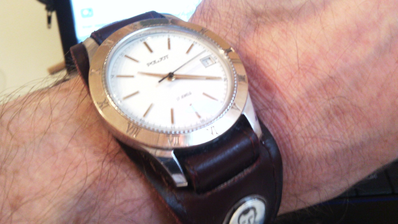 Напялил на ремень под Новый год Ракету на 21 камне,но так и не смог носить,уже утром снова одел свой тонкий де люкс и почапал по делам.Он хоть и котлета,но родней нету,да и ремень Nomos очень удобный,и стоит теперь дороже,чем часы.:)Вот загадка,де люкс - неинформативные часы (нужно внимательно всмотреться ,чтобы понять сколько времени)и часы не для понтов,но без них чувствую себя неуютно и раз в три дня выставляю точное время(если носить,то спешат)