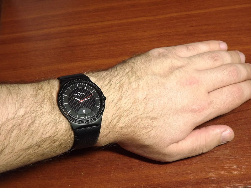 Будучи в чужом городе, заглянул в часовой магазинчик (хотел Orient M-Force взять) и купил именно Скагена. Тот же Оиент оказался красивым на картинке, а в реалиях не смог покорить даже своим титаном. А вот Skagen 234XXLTLB отлично лёг на руку ( да и скидка в 20% сыграла свою роль ;)). Покорил он меня своей "фишкой" - толщиной. Когда-то нравилось шокировать всех своим телефоном Samsung U100 толщиной всего в 6 мм. Теперь решил иметь подобные часы.