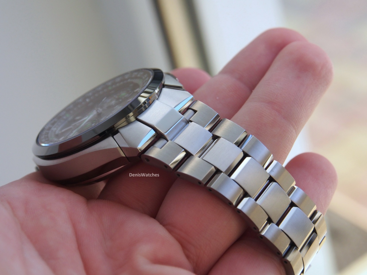 Как-то вот так вот обзавелся скромными часами с GPS синхронизацией времени на калибре H950. Очень понравилось качество антиблика - стекла, можно сказать, просто нет. У часов удобный для меня браслет - без лишних застежек. Кнопка здесь, одиночная, но она служит и для открытия браслета и для его удлинения. Для себя снял всего два звена. Часы несколько толстоваты и напомнили мне летающую тарелку. Но, скорее всего, следующая версия как раз будет потоньше, тем более у компании есть уже тонкая модель с GPS.