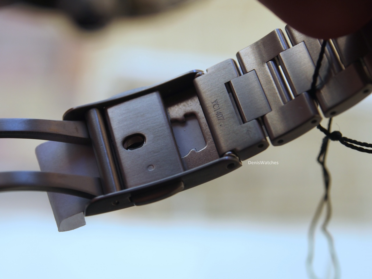 По качеству изготовления не смог ни к чему придраться - все четко, но разве, что болтики стоят не по центру): Но такое видел и в часах за более солидные деньги и всегда поражался таким вот недоделкам. Еще красив и сам циферблат-бутерброд - пятиминутные риски спрятаны под кольцо с минутными/секундными рисками, и видна окружность металла. Это конечно, скрывает сильно светонакопительные метки и снижает свечение. Секундная стрелка попадает четко по меткам. Циферблат не перегружен. Тиковый цвет как раз в вписывается и сливается с титаном. Браслет тоже выполнен из литых четко подогнанных и сложно обработанных звеньев - по середине явно однородный пескоструй, а вот крайние звенья - продольное сатинирование. Браслет подогнал, как и всегда самостоятельно, за три минуты - все на одиночных втулках - просто и надежно.