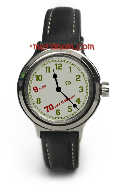 Если часы будут с ЦСС, то можно девятку и семерку повернуть под углом (9 напротив 1, 7 напротив 3) и написать где 9 за ней мая, а где цифра 7 добавить еще 0 и лет победы, и больше ничего не писать и не изображать, получится симметрично и оригинально. Если кто может это изобразить графически для наглядности, то сделайте пожалуйста.