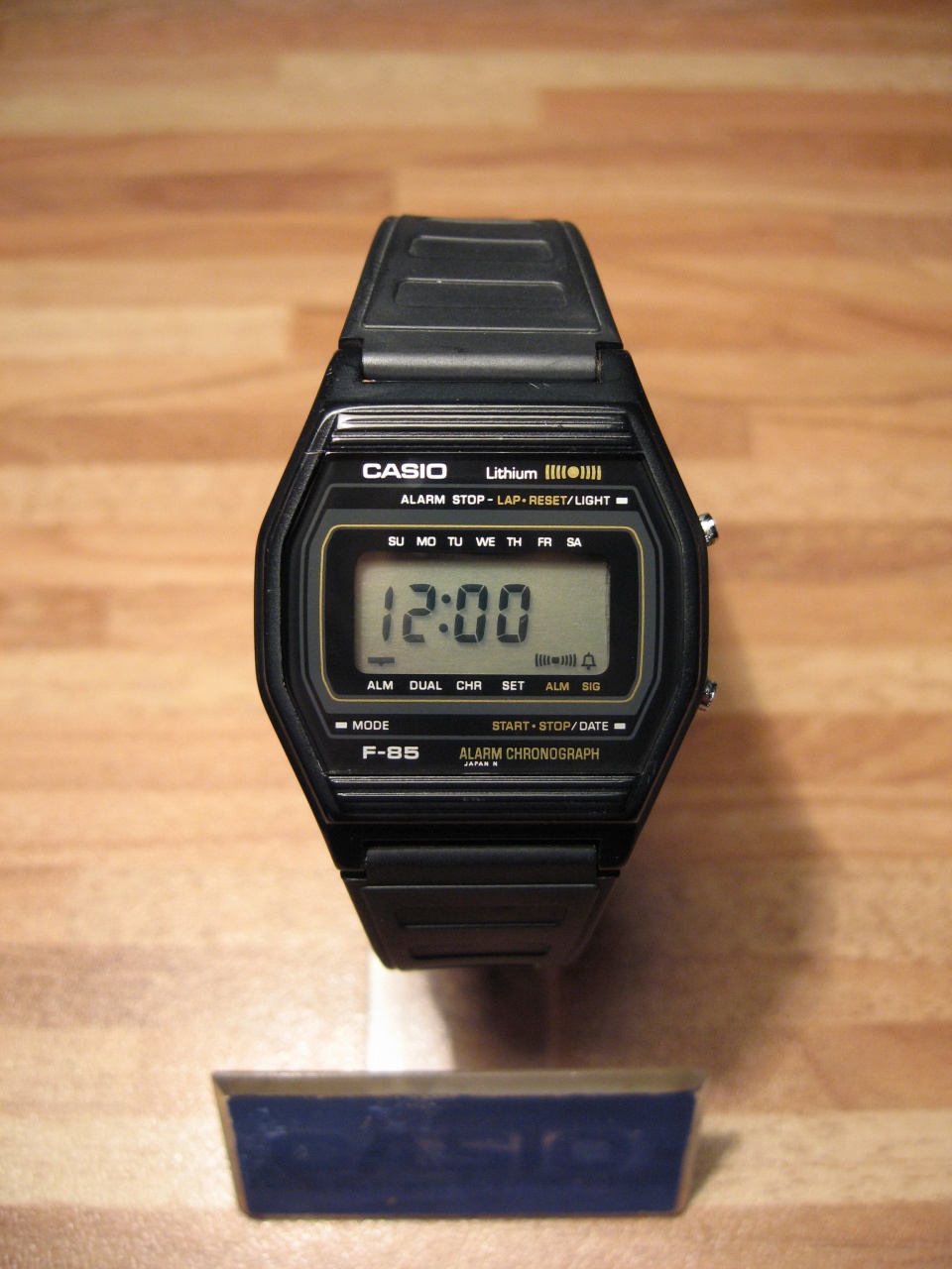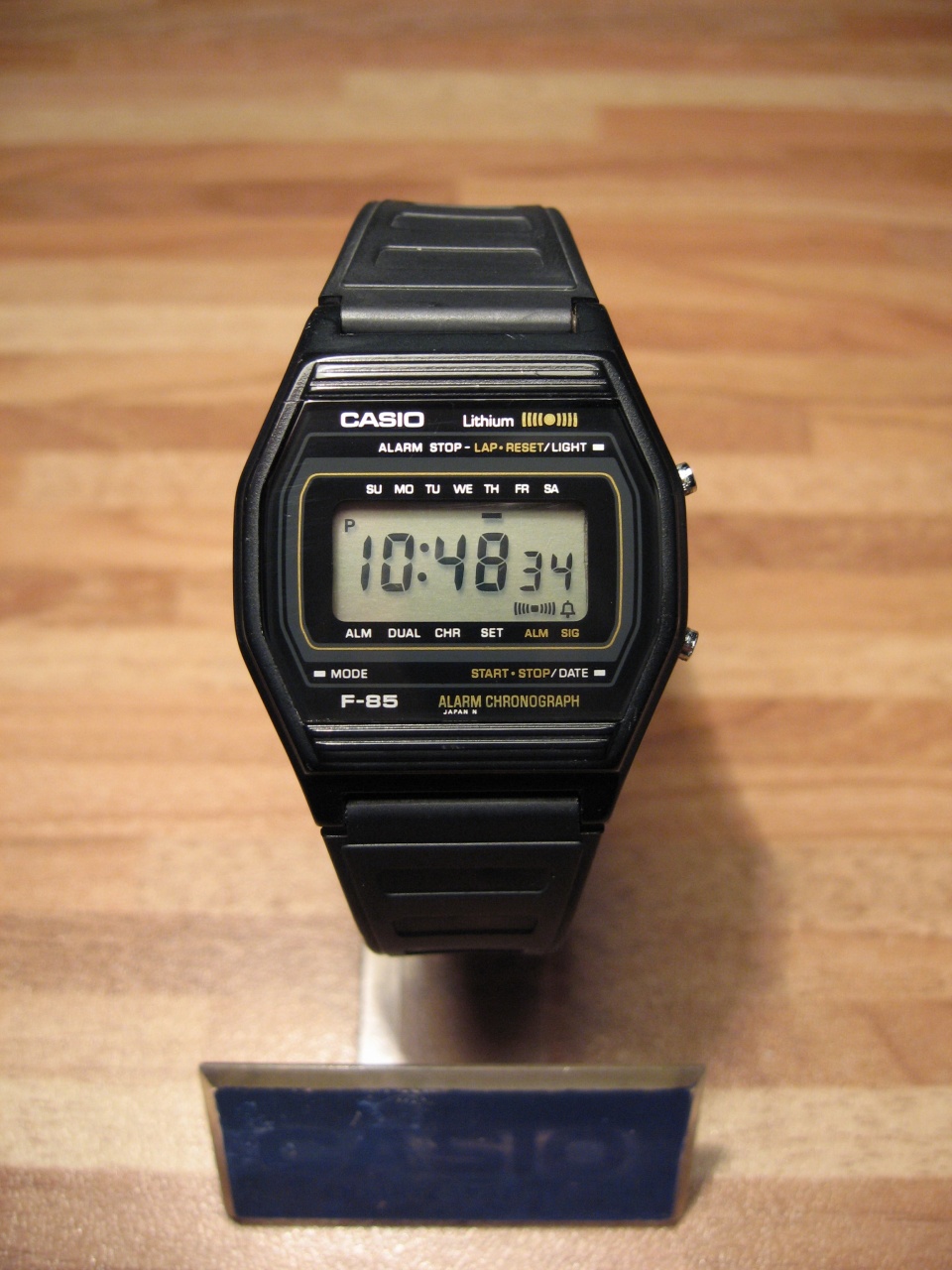 Casio F-85 - старая добрая модель начала 80-х в пластиковом корпусе.:)