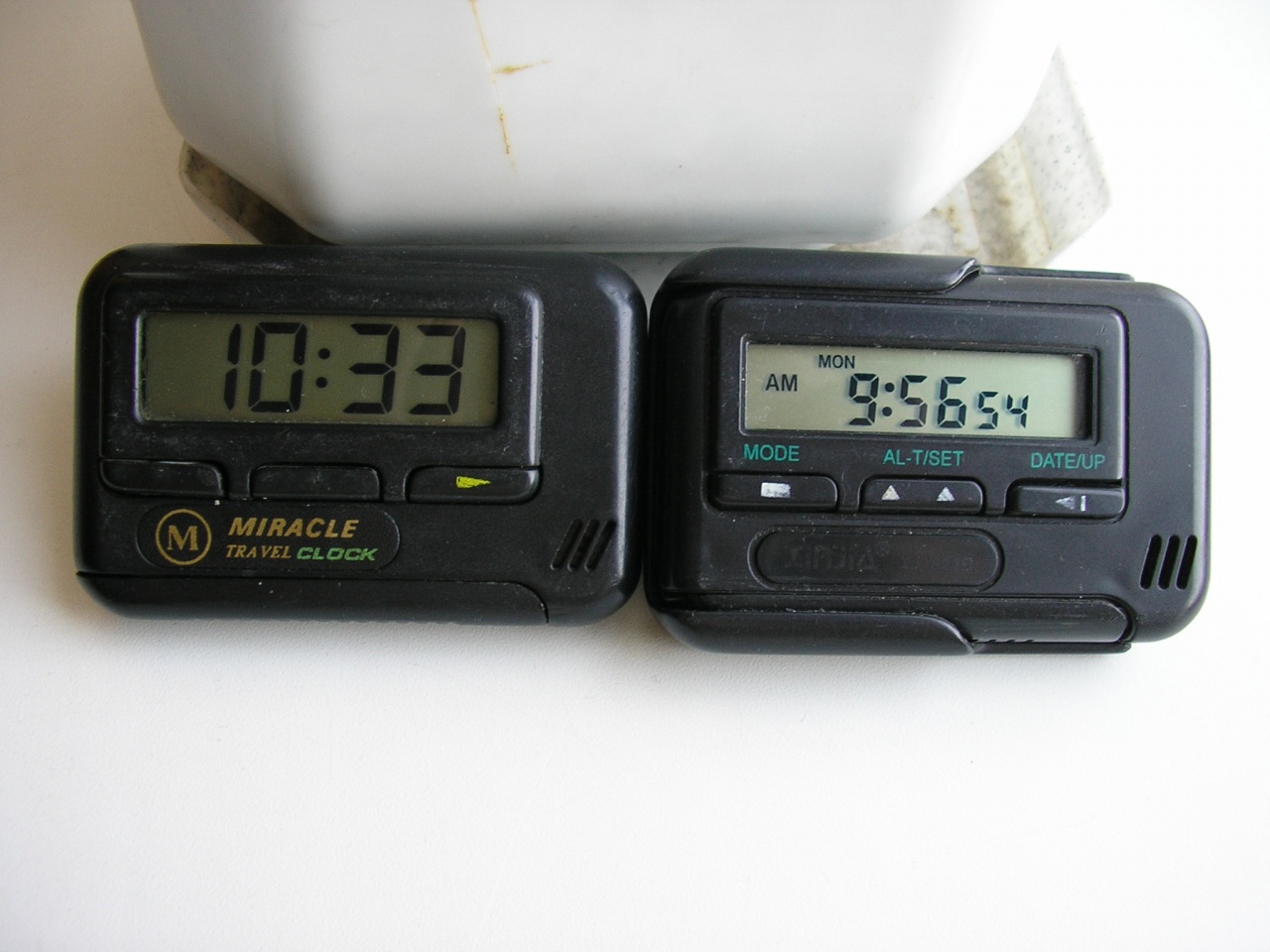 вот ведь голова моя садовая..:) стоят на компе перед глазами, а я тока сейчас обратил внимание. Покупались в конце 80х , только ради того что в них можно было будильник ставить на разные дни. Работают до сих пор. Четыре будильника..если не ошибаюсь, первый программируется по дням на выбор , остальные - обычные. Часы показывают час, минута, секунда, год, месяц, число, четыре разные мелодии, подсветка. Интересное конструкторское решение - подсветка включается нажатием на одну из ножек :) На эту же ножку выведена смена мелодий будильника.Вторая фотка - режим год-число-месяц