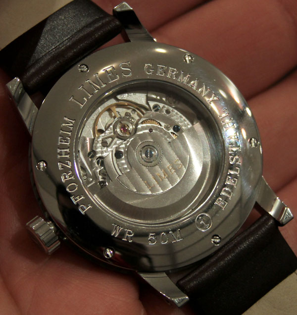 Новая модель Chyros Klassik от немецкой часовой компании LIMES имеет круглый корпус, изготовленный из нержавеющей стали, с полированными и матированными поверхностями, диаметром 43,0 мм, толщиной 10,3 мм, с 22-миллиметровым расстоянием между ушками, водонепроницаемый до 50 метров. На торце рифленой заводной головки, расположенной на 3 часах, выгравирован логотип бренда LIMES. На передней стороне часового корпуса установлено сапфировое стекло с антибликовым покрытием, а на завинчивающейся задней его крышке - минеральное стекло. Циферблат матово-черный, двухуровневый, с арабскими цифрами, часовыми индексами, часовой и минутной стрелками, покрытыми люминесцентным покрытием белого цвета. На фланце нанесена минутная разметка.