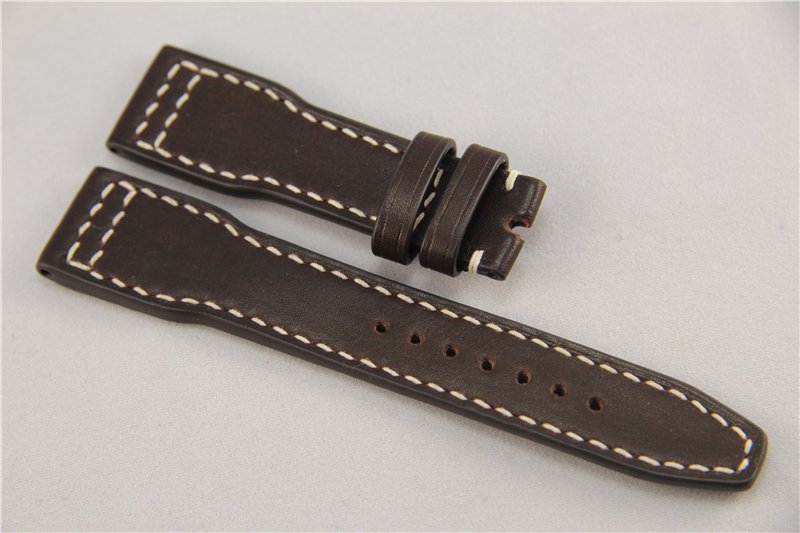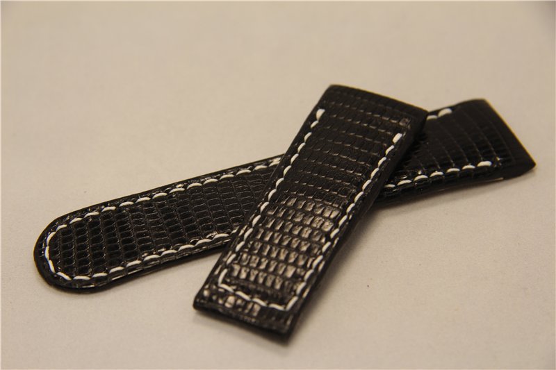 Ремень для часов Breitling Skyland Avenger. Верх ремня из кожи страуса, подкладка из кожи оленя. Ремень прошит в ручную нитками двух цветов.