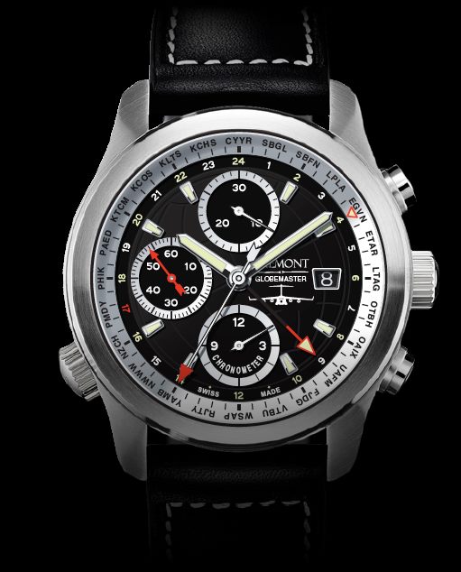 Круглый корпус изготовлен из нержавеющей стали, закаленной по запатентованной брендом технологии Trip-Tick, в результате чего его твердость достигает по Vickers 2000 VH (твердость стандартной нержавеющей стали 316L, применяемой для изготовления часовых корпусов, составляет 300 VH). Сапфировое стекло с обеих сторон покрыто девятью слоями антибликового покрытия, уменьшающих отращающие характеристики стекла на 95%. На периферии серебристого циферблата расположен вращающийся безель, с идентификаторами аэропортов в соответствии с перечнем Международной организации гражданской авиации. Для его вращения используется запатентованный брендом специальный подшипниковый механизм, обеспечивающий поворот на одну минуту при однократном нажиме на кнопку, расположенную на корпусе на 8 часах. На циферблате вытравлен рисунок глобуса. Модель оснащена автоматическим механизмом BE-54AE, официально сертифицированным COSC в качестве хронометра, с функциями индикации часов, минут (посредством соответствующих центральных стрелок), секунд (на малом боковом циферблате на 9 часах), даты (в апертуре на 3 часах), времени второго часового пояса (посредством специальной центральной стрелки), а также с хронографом (центральная секундная стрелка, 30-минутный счетчик на 12 часах, 12-часовый счетчик на 6 часах). Поставляется на черном кожаном ремешке с белой прошивкой с застежкой из нержавеющей стали. В комплект поставки входит, также, нейлоновый ремешок НАТО. В продаже модель будет доступна летом 2012 года. Ее цена составляет $ 5695. Источник: http://professionalwatches.com/2012/...ew_bremon.html |