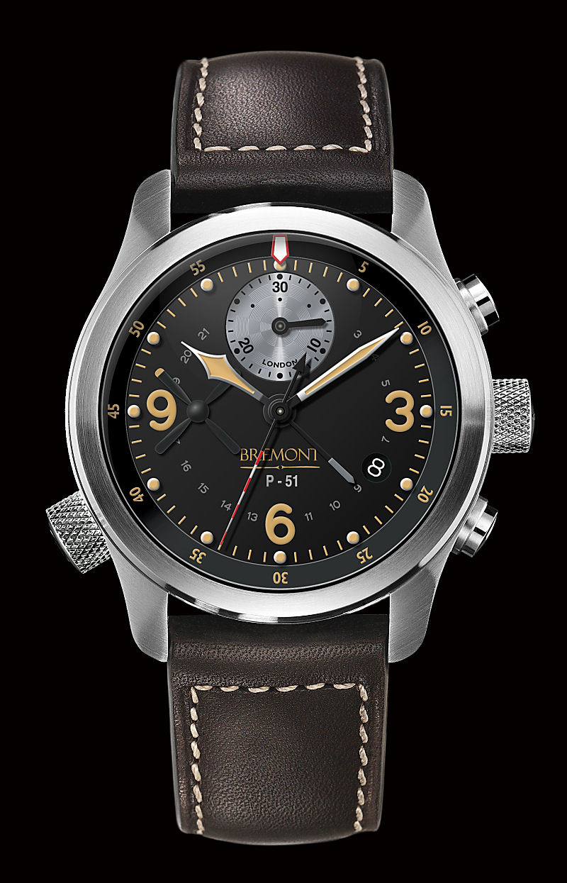 Сегодня британская часовая компания BREMONT объявила о предстоящем выпуске нового хронографа P-51, который будет официально представлен в марте на выставке BaselWorld-2011, а в продажу поступит осенью текущего года. Как явствует из названия новинки, она посвящена самолету P-51 Mustang, который считается лучшим истребителем ВВС США периода Второй мировой войны. В связи с этим, при изготовлении этих часов использованы частички алюминия с плоскостей исторического самолета P-51 Mustang. В частности, на 30-минутном счетчике хронографа и на роторе автоподзавода, просматриваемого через прозрачную заднюю крышку.
