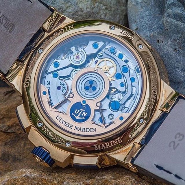 Круглый корпус новинки изготовлен из нержавеющей стали, диаметром 44,0 мм, водонепроницаемый до 300 метров. На торце завинчивающейся защищенной рифленой заводной головки, расположенной на 3 часах, выгравирована эмблема бренда Ulysse Nardin. Пушеры хронографа размещены на 2 и 4 часах. Сапфировое стекло установлено на передней стороне часового корпуса (с антибликовым покрытием) и на его завинчивающейся задней крышке (с изображением логотипа княжества Monaco). Вращающийся однонаправленный дайверский безель с синим покрытием и волнистыми линиями. Синий циферблат с повторяющимися ромбовидными изображениями, накладными продолговатыми часовыми индексами, часовой и минутной стрелками, покрытыми люминесцентным составом белого цвета с красными вставками. Элементы циферблата выполнены в цветах флага княжества Монако. Модель оснащена мануфактурным швейцарским автоматическим механизмом Ulysse Nardin UN-150, на 25 камнях, с балансовой частотой 28800 полуколебаний в час (4 гц), запасом хода 48 часов, функциями индикации часов, минут (посредством соответствующих центральных стрелок), секунд (на соответствующем малом боковом циферблате, расположенном на 9 часах), даты (посредством соответствующего цифрового указателя в круглой апертуре, расположенной на 6 часах), а также с хронографом (центральная секундная стрелка с красным наконечником, круглый аналоговый 30-минутный счетчик, расположенный на 3 часах и круглый аналоговый 12-часовый счетчик, расположенный на 6 часах). Поставляется браслете из нержавеющей стали с раскладной застежкой. Лимитированный выпуск 100 экземпляров. Вложение 1535690 Источник: http://forums.timezone.com/index.php...=0#msg_7333411 |