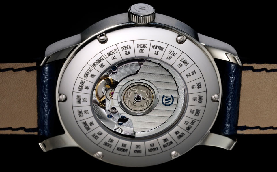 Новинка имеет круглый полированный корпус, изготовленный из нержавеющей стали, диаметром 43 мм. На торце рифленой заводной головки, расположенной на 3 часах, выгравирован логотип бренда Christopher Ward. Сапфировое стекло установлено на передней стороне корпуса (с антибликовым покрытием), а на его завинчивающейся задней крышке - минеральное. Циферблат со стилизированным изображением карты мира на фоне земного шара с параллелями и меридианами; на его периферии расположена круглая 24-часовая шкала, размеченная на "день/ночь". Часовая и минутная стрелки листьевидной формы, покрытые люминесцентным составом белого цвета. Модель оснащена швейцарским автоматическим механизмом, разработанным часовым мастером Johannes Jahnke JJ03 (существенно модернизированный базовый калибр ETA 2893, обеспечивающий вращение как "местной" часовой, так и GMT-стрелки в 24-часовом режиме), с 40-часовым запасом хода, функциями индикации часов, минут, секунд (посредством соответствующих центральных стрелок) и мирового времени - посредством соответствующего буквенного указателя, с идентификаторами аэропортов в соответствии с перечнем Международной организации гражданской авиации, в апертуре, расположенной на 12 часах (эти трехбуквенные идентификаторы и наименования соответствующих городов, выгравированы на задней крышке часового корпуса). Интересно, что одновременно с установкой конкретного идентификатора в апертуре (посредством заводной головки), на карте мира, расположенной на циферблате, в точке, соответствующей местоположению указанного аэропорта появляется красная точка. Поставляется на синем ремешке из кожи луизианского аллигатора с раскладной застежкой из нержавеющей стали. Цена модели составляет всего £ 1575. Вложение 514372 Вложение 514373 Вложение 514374 Источник: http://www.monochrome.nl/christopher...900-worldtimer |