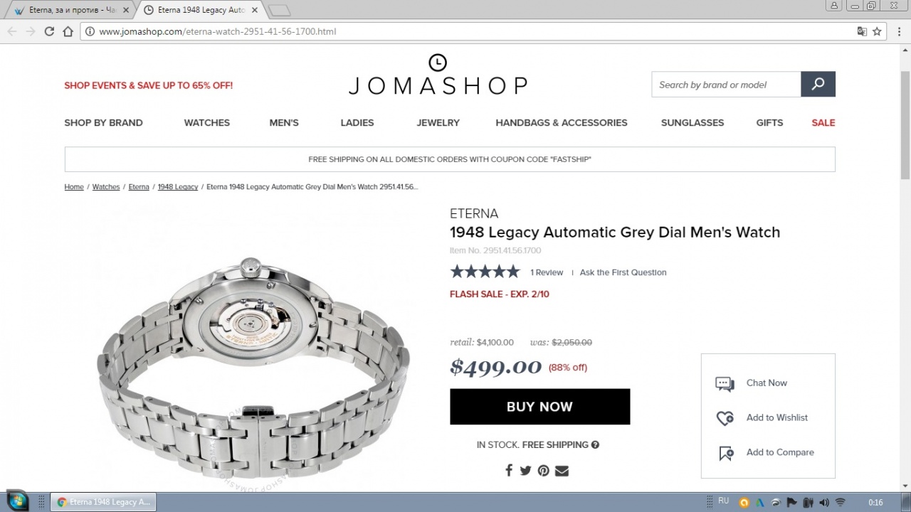 Спасайте господа, нужны ваши мнения, почему стоит или наоборот не стоит покупать Eterna 1948 Legacy Automatic Grey Dial Men's Watch Item No. 2951.41.56.1700 ? http://cdn2.jomashop.com/media/catal....56.1700_2.jpg Проблема в том, что в принципе я бы хотел в перспективе купить часы на механике, в белом металле, или титане, но не прямо сейчас. Правда изначально хотел светлый цифер...но в этой Eterna притягивает основательная скидка, неплохой бренд, и хороший мех - Sellita Calibre SW 300-1 Боюсь что такого аттракциона невиданной щедрости больше не будет :) retail: $4,100.00 цена: $499.00 (88% off) |