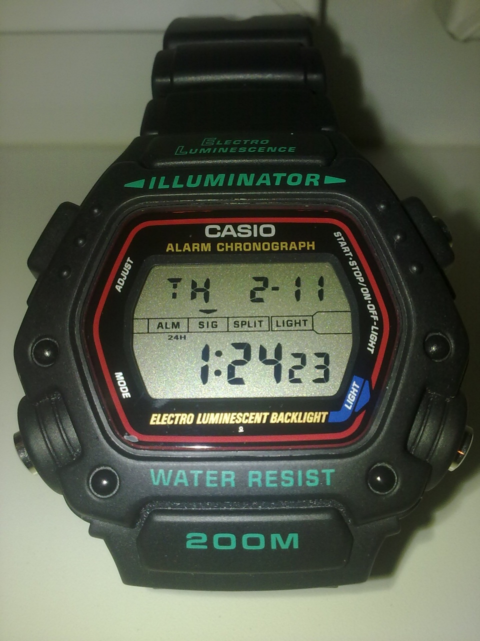 Я хочу рассказать вам про еще одни свои "ветеранские" часы, которые для меня были первыми Сasio вообще и предвестниками моих G-Shock. Когда-то у меня, как и у многих из вас были часы Электроника-5, это были простые часы, со скудненьким дизайном, металлическим корпусом, светодиодной подсветкой, будильником, и даже ручной подстройкой хода! Все в мире не вечно и когда я захотел купить на свои заработанные деньги настоящие Casio дома был скандал :-) На то время (точно не помню но как бы не 97 год) они стоили довольно порядочно, гораздо больше чем "Электроника - 5", но все же на G-Shock я немного насобирал. Решив, что разницы особой нет (тогда я еще не "шарил") я купил часы напоминающие внешностью G-Shock и как оказалось не уступающие им по функциям. http://s001.radikal.ru/i195/1007/f1/eee1390a2148.jpg Часы не очень большие, тем не менее размером и дизайном напоминают Шоки, но не имеют защитного резинового безеля, соответственно минеральное стекло не так утоплено в корпсе и менее защищено. Ширина ремешка 19 мм в узкой части и 22 в основной. Вес до 100 гр. На оригинальном ремешке возле корпуса волна из двух изгибов, металлическая пряжка с одним зубом. http://i061.radikal.ru/1007/56/efb5a3733974.jpg http://s16.radikal.ru/i190/1007/cc/e5e6f64a899c.jpg Ремешок свободный, т.е. обхватывающих рогов у корпуса как у шоков нет, из-за этого на руке сидят пожалуй не так жестко как браслет, а свободно телепаются, если не затянуть, и могут сползать вверх или вниз. Недавно заменил ремешок на новый за 25 грн, более мягкий чем оригинальный, но по внешнему виду вполне приличный, хоть и не "бархатный" как оригинальный. http://s13.radikal.ru/i186/1007/fd/d13a9db94960.jpg http://s44.radikal.ru/i103/1007/78/d7692198a385.jpg Неоригинальный ремешок за 25 грн :) Циферблат белый, информацию видно очень хорошо. Информация на дисплее распределена в двух зонах, в нижней собственно текущее время, которое возможно в двух форматах, 12/24, над часами, минутами, секундами находятся данные о дне недели, числе и месяце. В режиме изменения возможно изменить год, т.е автокалендарь до 29 года, потом видимо все по-новому, или апокалипсис :-) В полосе разделяющей верхнюю и нижние части информация о включенных режимах сигнала каждого часа и будильника а а также индикатор мигания. Подсветка голубого цвета, очень яркая, сравнительно с зеленой моих 6600. Заявленное время работы от батареи составляет около двух лет. На практике работают около 3х. Батарейка CR2016. Много раз менял самостоятельно, никаких проблем. Интересно, что начинка легко помещается в корпус DW6600, только в таком случае происходит некоторая неразбериха с правыми кнопками, и кнопка подсветки по центру остается нерабочей. Крышка стальная, на шурупах. Класс водозащиты - 20 BAR, выдерживали всевозможные погружения абсолютно без проблем, только помните о смызывании колечка силиконом, при вскрытиях. Корпус со временем потерял надписи 200м и Illuminator, стал более глянцевым. Царапины на корпусе незначительные, падения часы ведерживали довольно стойко, стекло ради интереса поцарапал керамической пилкой для ампул (на дежурстве делать было нечего :-) ) А так ничего, до трагичной игры в волейбол на пляже, когда на них пришелся довольно сильный удар мячом, в результате чего крепление браслета "серьга" вырвалось из корпуса, процарапав из паза глубокую борозду. После этого много раз замазывал эпоксидкой и разными клеями, долгое время не носил, теперь изредка ношу для собственного удовольствия, и удобств