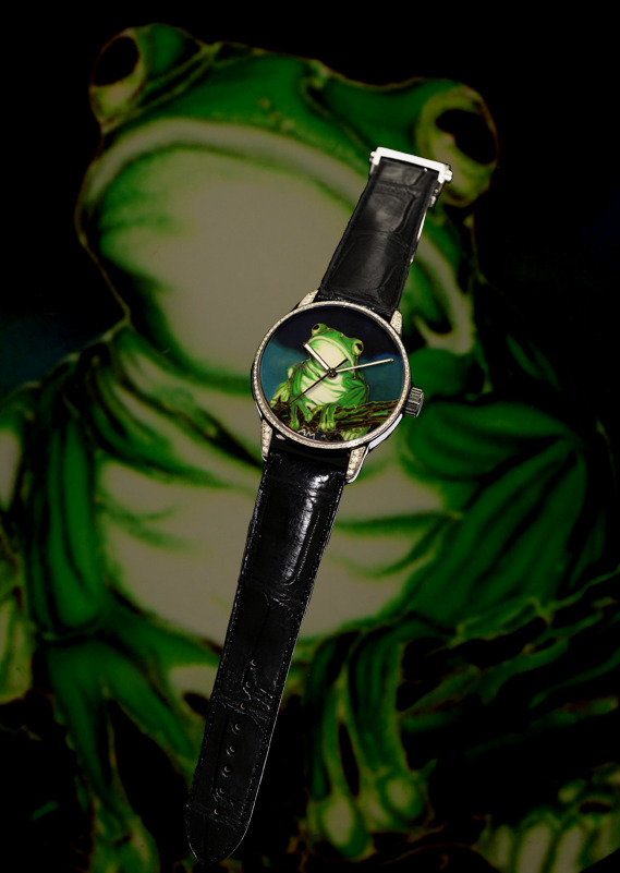 Scenes from the Harem On of a line of timepieces, made in stainless steel with pavé setting of 4.700ct. TW VVS full cut diamonds. Miniature painting showing sequences from famous 19th century Orientalism paintings among them Scenes from the Harem. Half moon shaped aperture for digital time display by revolving disk. Mechanical self-winding movement, alligator strap, case measures 42mm. http://people.timezone.com/jmerino/harem1.jpg Porcelain Medallion Stainless steel case, a hand painted porcelain medallion replacing the watch crystal, medallion with gold aperture and small crystal showing the hours digitally on revolving disk, (Patent CH686988). Mechanical self-winding movement, alligator strap, case measures 42mm. http://people.timezone.com/jmerino/harem2.jpg Basse-Taille Dial Champlevé with translucent enamel, available in various colors. Mechanical self-winding movement, alligator strap, case measures 42mm. http://people.timezone.com/jmerino/harem3.jpg Champlevé Stardust Dial Champlevé with mirror polished starlit sky with translucent enamel, available in various colors, the enamel is enriched with reflecting diamond dust Mechanical self-winding movement, alligator strap, case measures 42mm. http://people.timezone.com/jmerino/harem4.jpg Magnificent Blossoms On of a line of timepieces, made in stainless steel pavé set. Brilliant and pear-shaped diamonds set in black enamel on the reverse of the sapphire crystal. Round aperture for digital time display by revolving disk. Mechanical self-winding movement, alligator strap, case measures 42mm. Источник: http://forums.timezone.com/index.php...=4244827&rid=0 |