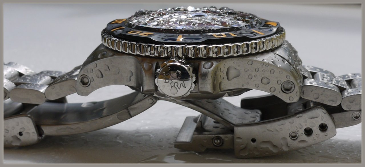 застёжку на дайверских ГС. эмблема ГС штампованная (как на Касио и Q&Q по 15 баксов), детали застёжки также гнуто-штампованные, причём металл тонкий. обработка кромки некоторых элементов выполнена настолько грубо, что я подумал что передо мной фейк. но нет. самые настоящие ГС. кстати, аналогичные застёжки ставят в разы более дешёвый 300-метровый дайвер Ориент. |