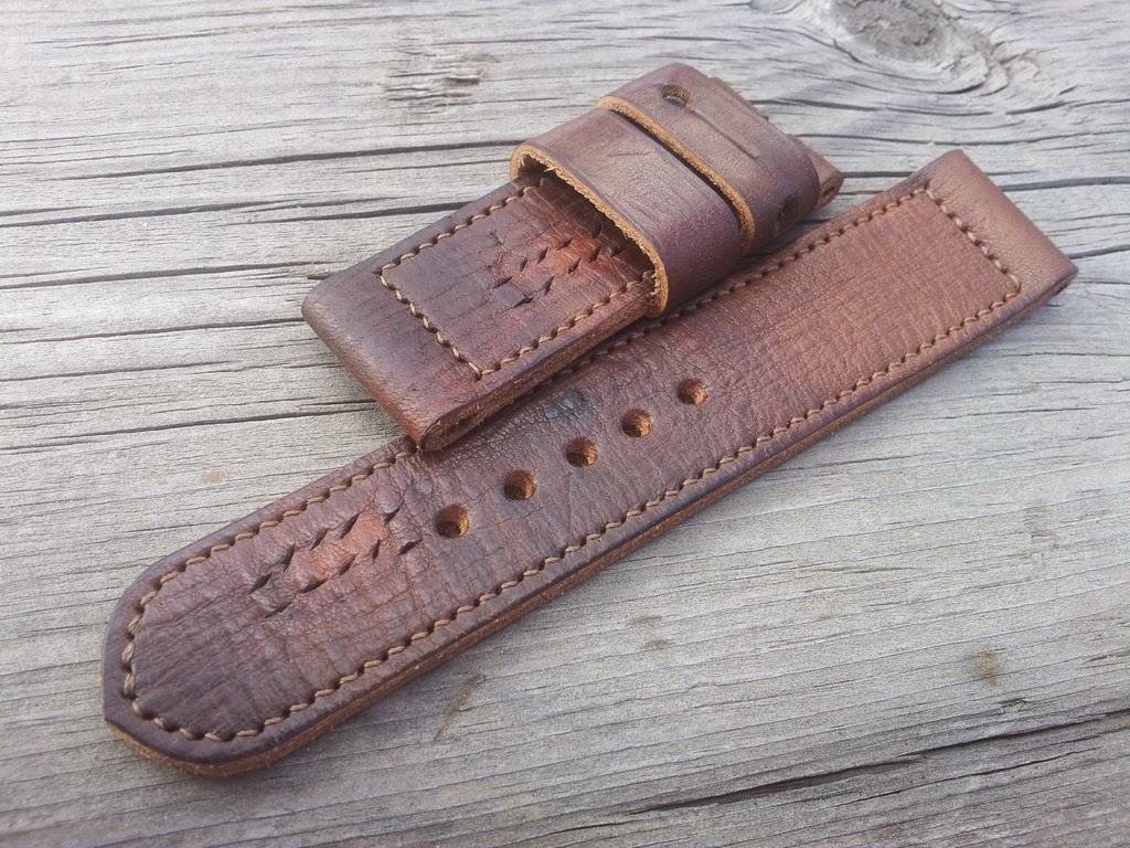 Хочу похвастаться новыми обновками из аммо кожи для своих памов. Сегодня это два ремешка из кобуры 100 летней давности от маузера. Взял себе сразу два одинаковых ремешка, чтобы выбрать один с наиболее удобным расположением по отверстиям застежки для моего запястья, а второй, думаю, что также не залежится и попадет в хорошие руки. Но сейчас о самом ремешке. Сделан как всегда супер качественно от этого мастера и представляет собой отличный баланс из Аммо и классики. Сейчас ношу его на своем радике и снимать не хочется! Ремень имеет прекрасный запах военной кожи (можно завинтажить любую кожу, но запах реальной аммо кожи неповторим) и еще ремень имеет очень характерное военное поскрипывание ;) Ну и конечно, когда берешь часы на таком аммо ремне, понимаешь, что эта кожа "видела" историю Октябрьской Революции и Первой Мировой Войны! В общем, я рад! Спасибо мастеру! Ну и конечно несколько фото: [IMG]http://i1308.photobucket.com/albums/...pszqh9htr4.jpg[/IMG] http://3.bp.blogspot.com/-4dpohrYGng...ser%2B1917.jpg http://i1308.photobucket.com/albums/...psohhxcr0x.jpg http://i1308.photobucket.com/albums/...psw4unhiyv.jpg |