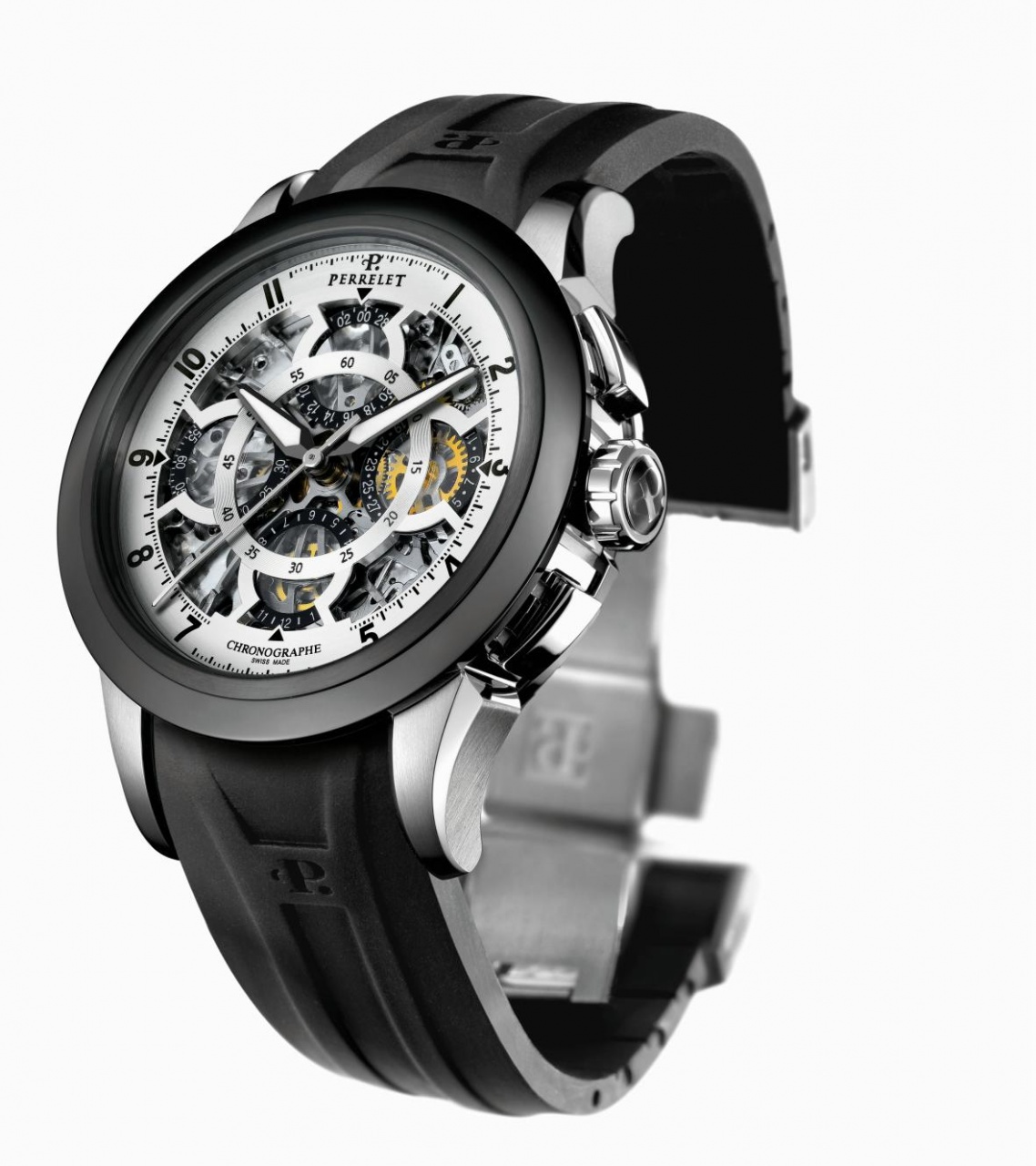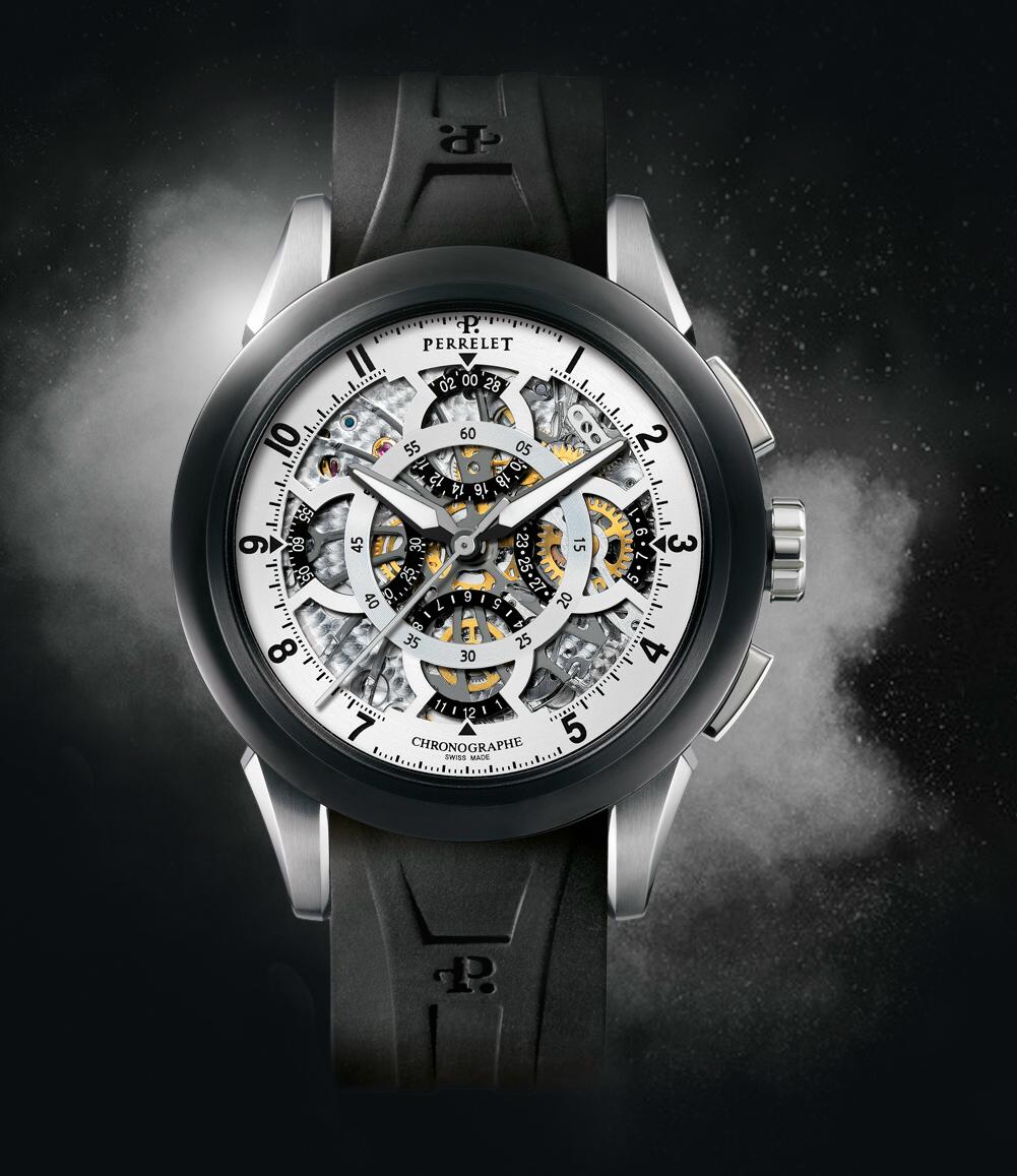 Один из старинных швейцарских часовых брендов, чья история насчитывает более двух столетий, компания Perrelet постоянно радует своих почитателей новинками наручных часов со сложными механизмами. Вновь выпущенный хронограф марки Skeleton Chronograph продолжает лучшие традиции высокого часового искусства, которых придерживается Perrelet.