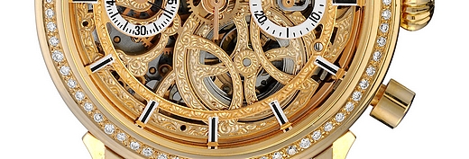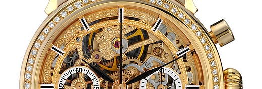 Сайт Фонда высокого часового искусства дает следующее определение скелетону: "часы с прозрачным циферблатом и задней крышкой, механизм которых лишен платины и мостов с целью открыть колесную передачу". К этому следует добавить, что механизм дорогих скелетонов собирают из специально обработанных и покрытых ручной гравировкой деталей. Изготовление скелетонов представляет собой целое искусство, балансирующее на грани часового и ювелирного. Оно требует большего мастерства и времени, чем производство обычных часов. Чтобы превратить обычный механизм в скелетон, для начала его нужно полностью разобрать. После этого мосты и платину либо убирают совсем, заменяя их сапфировыми пластинами, либо уменьшают до минимума, чтобы обеспечить максимальную зрелищность механизму. Этот процесс называется "ажурированием". Затем все детали полируются, покрываются слоем драгоценного металла, чаще всего золотом, и, конечно же, гравировкой. После обработки механизм нужно снова собрать, но поскольку толщина мостов стала значительно меньше, требуется настоящее мастерство, чтобы сохранить первоначальную надежность колесной передачи и точность хода. Поэтому скелетоны с усложнениями считаются более престижными, чем просто сложные часы. Hysek Kilada Hesperos Tourbillon GMT http://timeway.ru/images/articles/s/...tulke/57-1.jpg Эта модель с турбийоном, ретроградным индикатором GMT и стрелочным календарем-датой - не типичный скелетон, как, впрочем, все часы от Йорга Хайсека. Во-первых, механизм часов имеет не круглую, а прямоугольную форму. А во-вторых, здесь скелетонизирован только модуль турбийона, чтобы вы сполна оценили самое красивое часовое усложнение. Из всей колесной передачи видно лишь храповое колесо заводного барабана и половинка колеса модуля стрелочного календаря-дата. Совмещенные модули календаря и ретроградного GMT у отметки "12 часов" скрыты декорированным узором перлаж мостом. Надо признать, что это очень верное решение. Для скелетона с большим количеством дополнительных функций пространство циферблата организовано очень грамотно: индикатор GMT, управляемый дополнительной кнопкой, и календарь визуально не отвлекают внимания от стрелок. Механизм выглядит стильно и современно: платина и средний мост сделаны из сапфира, другие мосты покрыты родием и гравировкой Cotes de Geneve. Изогнутый мост турбийона выполнен в форме bridge (что, собственно, переводится как "мост"), повторяющей очертания самого корпуса Kilada. Механизм с ручным заводом имеет очень приличный запас хода 80 часов. Характеристики: корпус 60,2 х 40,5 х 16,1 мм из белого золота 18К, сапфировое стекло с антибликовым покрытием, механизм с турбийоном и ручным заводом, резерв хода 80 часов, частота работы баланса 21 600 пк/час, индикация часов, минут, секунд, даты, GMT, каучуковый ремешок, золотая браслетная застежка, WR 30 метров Где найти: заказать часы можно у официального дистрибьютора www.lux-style.ru Цена: 7 080 000 рублей Korloff Limited Edition http://timeway.ru/images/articles/s/...tulke/58-1.jpg Перед нами - прекрасный пример того, как дополнительные функции и скелетон совершенно преображают популярный автоматический механизм ЕТА 2824-2. В данном случае к классическому трехстрелочнику добавился модуль полного календаря с дисками индикаторов даты, дней недели, месяцев и фаз Луны. Собственно говоря, сам механизм особых изменений не претерпел. Свой стильный скелетон дизайнеры Korloff созда