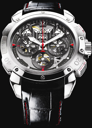 Корпус новинки круглый, из нержавеющей стали или из нержавеющей стали с черным DLC-покрытием, диаметром 43,5 мм, толщиной 15 мм, водонепроницаемый до 100 метров. Сапфировое стекло на лицевой стороне корпуса (с антибликовым покрытием) и на его задней крышке. Циферблат серебристый или черный, с белыми или черными цифрами и с голубым или оранжевым люминесцентным покрытием. Модель оснащена швейцарским автоматическим механизмом Perrelet P-291, на 25 камнях, с балансовой частотой 28800 полуколебаний в час, запасом хода 46 часов, функциями индикации часов, минут (посредством центральных стрелок), секунд (на боковом дисковом указателе на 9 часах), даты (на боковом дисковом указателе на 3 часах), а также с хронографом (центральная секундная стрелка, 30-минутный дисковый счетчик на 12 часах, 12-часовый дисковый счетчик на 6 часах). Поставляется на черном каучуковом ремешке. MSRP модели составляет 5500 евро. Вложение 166062 Источник: http://forums.timezone.com/index.php...=5857310&rid=0 |