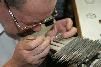 Вложение 52568 Процесс создания скелетона достаточно емкий, на него уходит много времени, так как необходимо не только идеально вырезать детали, но и тщательно их отделать. Поскольку механизм полностью обнажен, все детали должны быть тщательно отполированы, украшены резьбой, орнаментом, а иногда, и драгоценными камнями. Таким образом, для того, чтобы придать деталям механизма привлекательный вид, они должны пройти несколько этапов обработки. Прежде всего, на мосты наносят различные узоры, самыми узнаваемыми из которых являются «женевские волны» (Cotes de Geneve) и жемчужное зернение (Perlage) - перекрывающие концентрические круги. После этого на отшлифованные поверхности мостов наносят специальное покрытие белого цвета. Чтобы придать механизму законченный вид, мастера украшают детали камнями, «вмонтированными» в отведенные для них места. Устанавливаются камни непосредственно в платину или мост, однако существует возможность их установки и в шатон (оправа драгоценных камней). В последнем случае, вместо того чтобы запаивать камень в отверстие детали, его помещают в специальное кольцо, которое привинчивают к детали. Вложение 52569 Cotes de Geneve Наиболее сложной техникой отделки механизма является гравировка. При помощи фрезерования на определенных участках вырезают специальные отверстия, через которые можно наблюдать за работой всего механизма. На поверхность наносится гравировка, которую мастера элитных брендов наносят вручную. Как правило, гравируются платины, мосты и ротор, также отдельные колеса. После такой обработки часы выглядят просто великолепно, однако есть в ней минусы - ради изысканного внешнего вида мастерам приходится приносить в жертву прочность мостов и платин. Особое место среди всех видов отделки занимает гильоше. По своей сути эта техника обработки имеет сходство с гравировкой, но в этом случае узор наносят при помощи резца. Детали гильошируют на специальных машинах, вращательного или поступательного типа, а чтобы рисунки не были похожи друг на друга, специалисты используют дополнительные насадки в виде разных геометрических фигур, среди которых большую популярность получили ромб и роза. Вложение 52570 Отдельного внимания заслуживает узор «круговые солнечные лучики» (Soleil decorated), который наносится путем шлифования поверхности. Этот прием оставляет множество тонких царапин, и довольно часто применяется при обработке ротора и заводных колес. Нанесение тонких линий и канавок осуществляется шлифовальными кругами, либо специальными пастами. Такого же результата позволяет достичь крацевание (Colimaconnage), с помощью которого можно увеличить частоту и уменьшить толщину линий. Существует также такой вид отделки, как псевдогильоше. Получить рисунок посредством данной техники можно двумя способами: в первом случае заготовку кладут под пресс, который выдавливает задуманный рисунок, во втором используется специальный штамп, оставляющий канавки подобно технике гильоше. Но, к сожалению, качество узоров, получаемых при помощи этих методов, нельзя назвать высоким, поэтому престижные бренды применяют их достаточно редко. В наши дни можно выделить единицы производителей, которые остаются верны высоким стандартам отделки механизмов. Это компании Patek Philippe, Audemars Piguet, Girard-Perregaux, Jaeger-leCoultre, Breguet и некоторые другие. Остальные часовые мар
