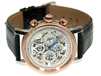 Круглый корпус из 18-каратного розового золота, диаметром 46 мм. Хронографическая кнопка и заводная головка, также, золотые. Сапфировое стекло на лицевой стороне и на задней крышке корпуса. Циферблат вручную скелетонизированный, из серебра с оригинальной матовой отделкой в стиле Breguet. Центральные часовая, минутная и секундная стрелки стальные, позолоченные. На боковых циферблатах (минутный счетчик на 3 часах и боковой секундный циферблат на 9 часах) - вороненые. Модель оснащена редким однокнопочным хронографическим механизмом Minerva с колонным колесом, производства 1925 года. В период своего расцвета, часовая компания Minerva была одним из лучших производителей хронографов в мире. Она в числе первых применила минутный счетчик. Название Minerva происходит от имени римской богини. Калибр с ручным заводом, на 17 камнях, с балансовой частотой 18000 полуколебаний в час и запасом хода 37 часов. Скелетонизирован вручную, гравирован и гильоширован, глубоко текстурирован. Мосты родированы, все 34 винта вороненые с помощью открытого пламени, а не с гальваническим покрытием, как это часто делается в настоящее время. Черный ремешок из кожи аллигатора с пряжкой из 18-каратного розового золота. Цена модели составляет 87500 евро, или около $ 118000. Вложение 69417 Вложение 69418 Источник: http://www.watchtime.com/2010/09/gri...the-blue-wave/ |