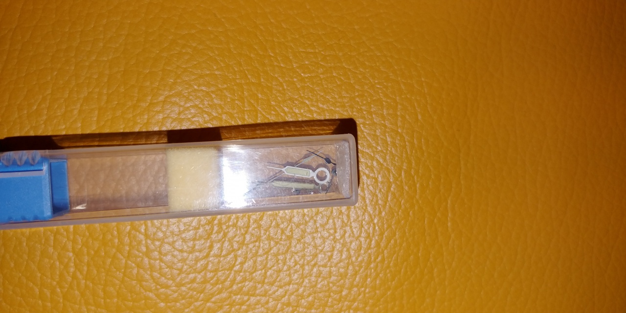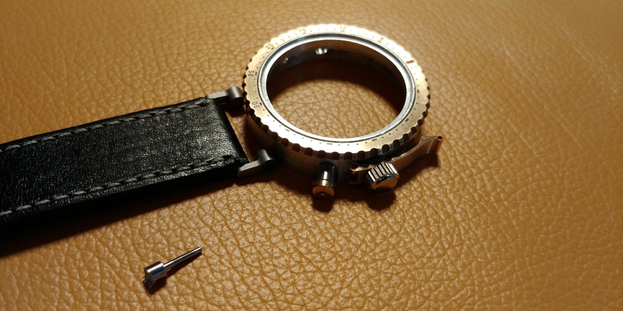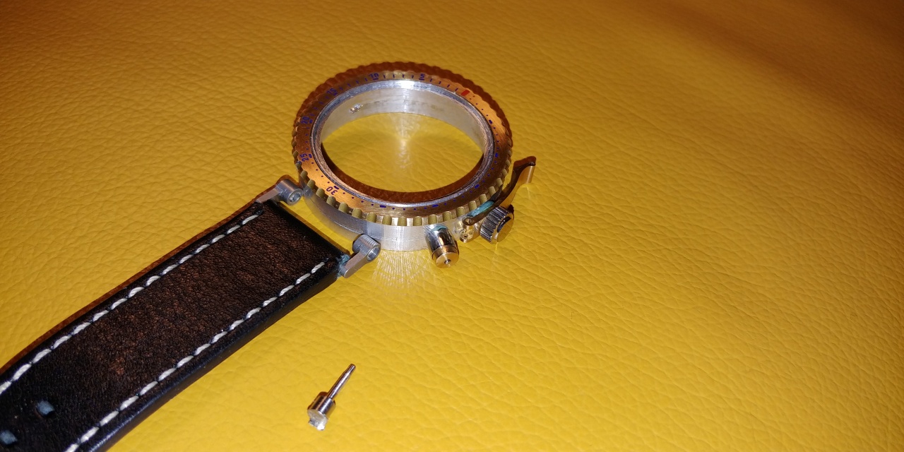 Изменил рычаг-давилку (зачем в нём дырочка можете не спрашивать, сам не знаю. Показалось так выглядит лучше.) Делаю пока ушки под ремень. Купил стрелки и сапфирчик, в нём я не свсем уверен, но капля воды на нем держит форму и не растекается.