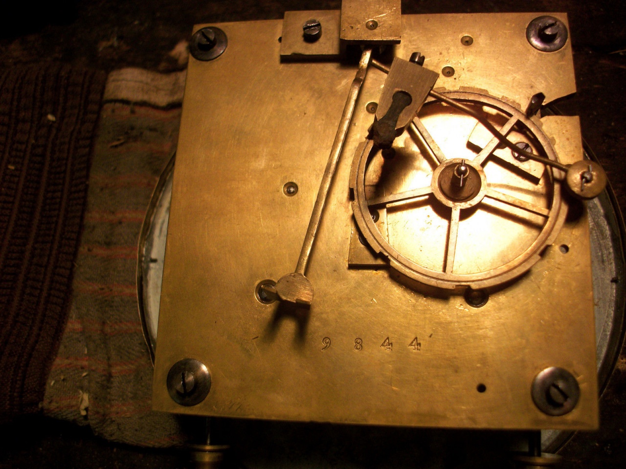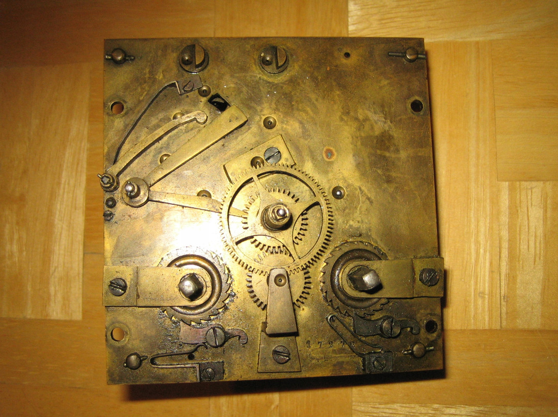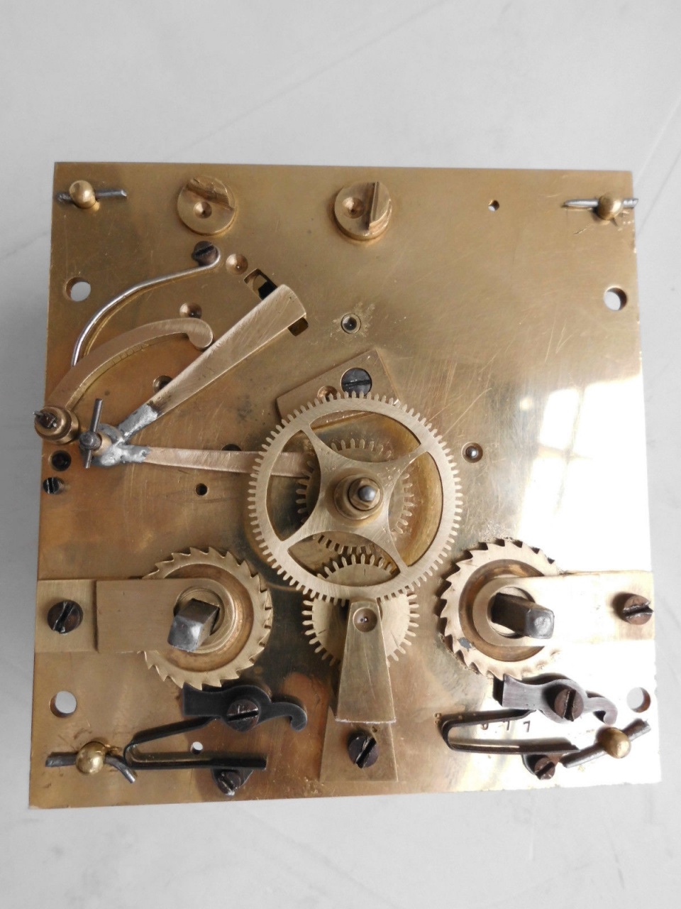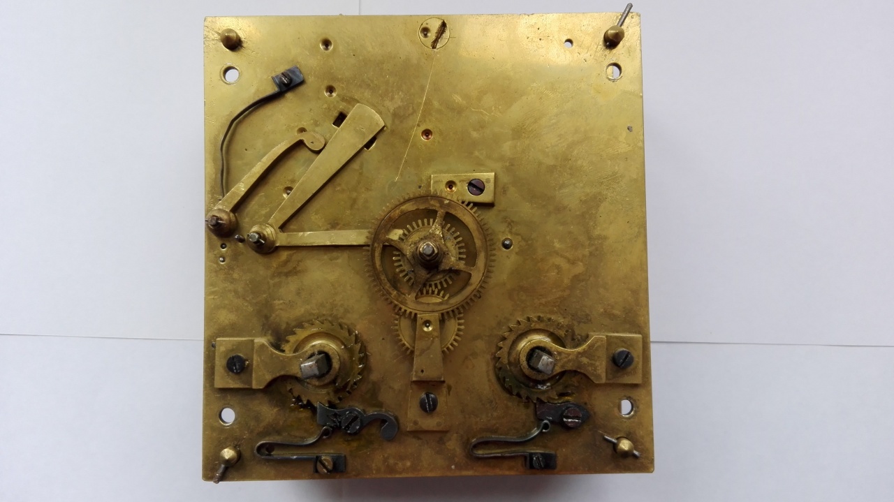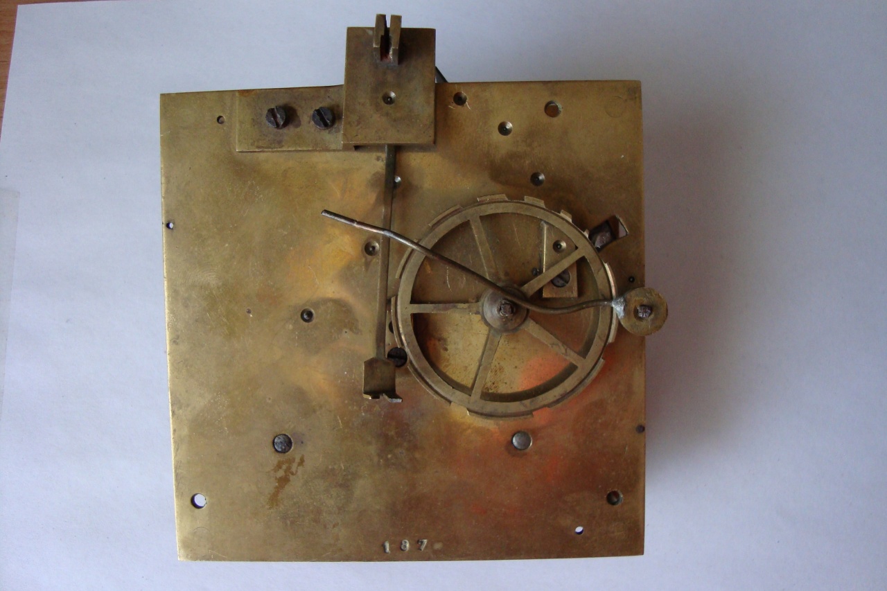 Я все не мог вспомнить, где видел подобный кронштейн. Фото не помню чьего комплекта, у меня такой же мех, для себя сохранил фото. Кронштейн похожий, но "перевёрнутый". Крепления снизу. Т-образная планка на маятнике, технологические отверстия, крепления платин... Схожесть счетного колеса... Мост анкерной вилки, да, напрочь другой. На молоточек не смотрим - он не родной, на моем мехе другой. В общем, ни на что не претендую... за своё надеюсь. Кстати, Татьяна, кронштейн и полка на четвёртом фото в первом сообщении не такая. Крепления по бокам. |