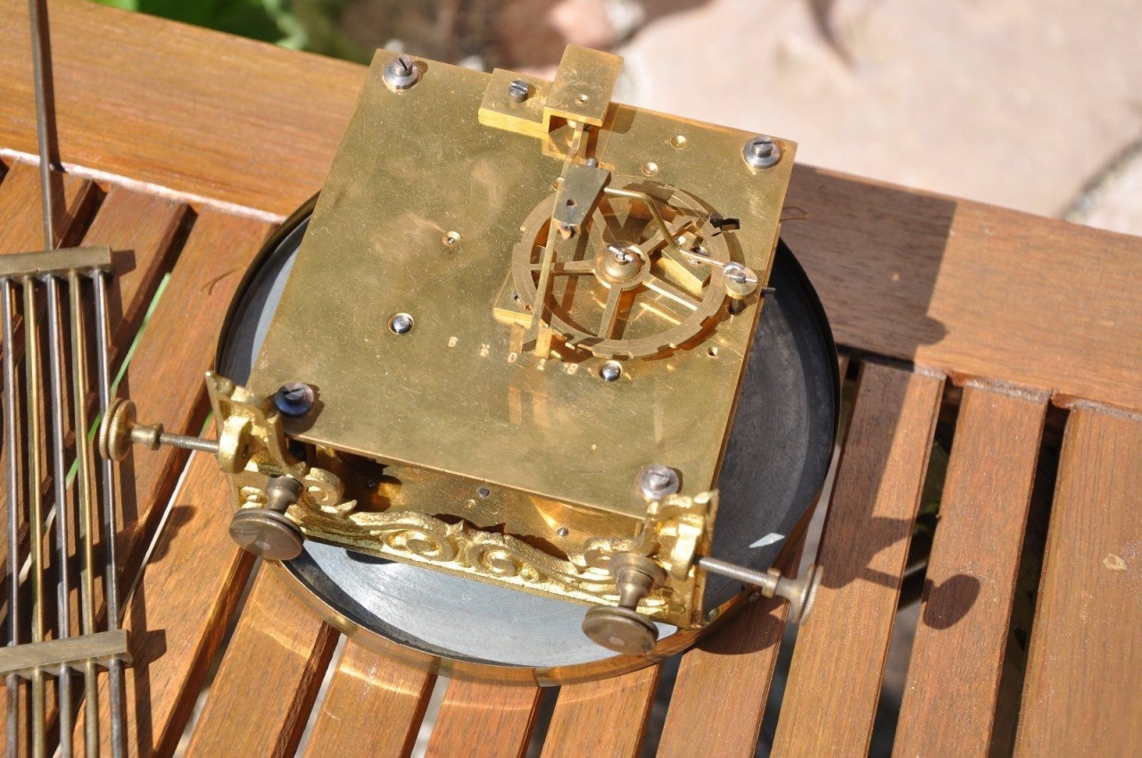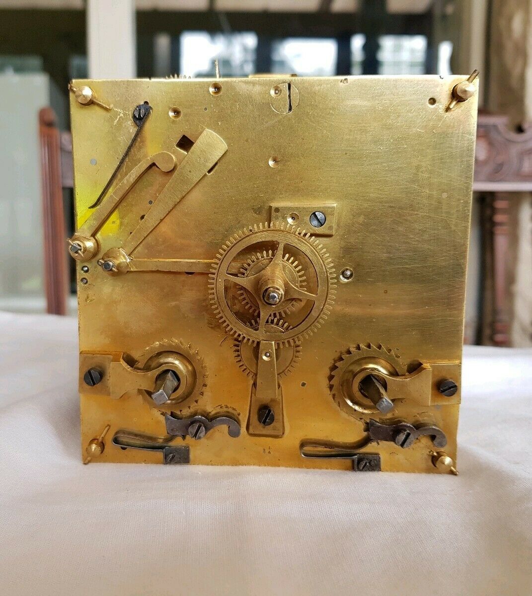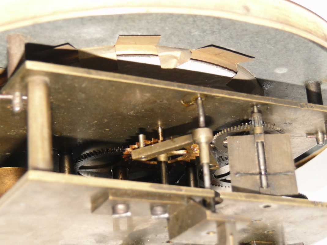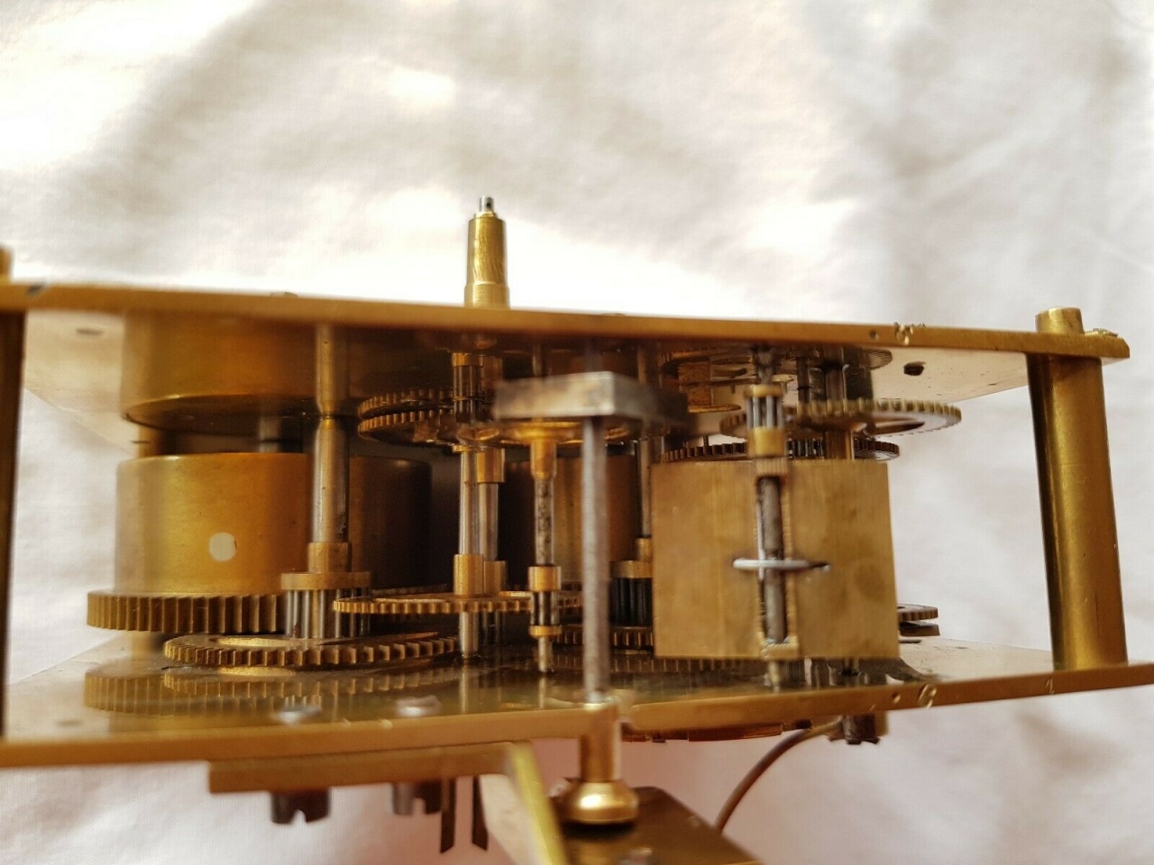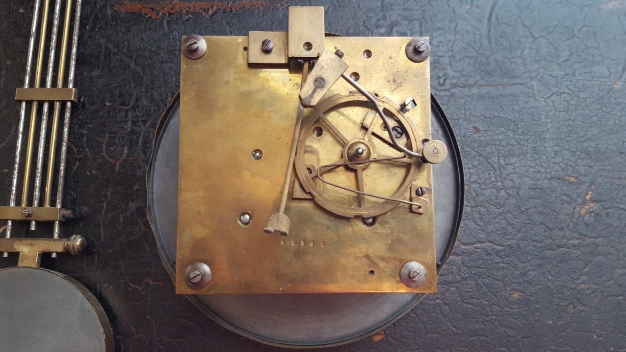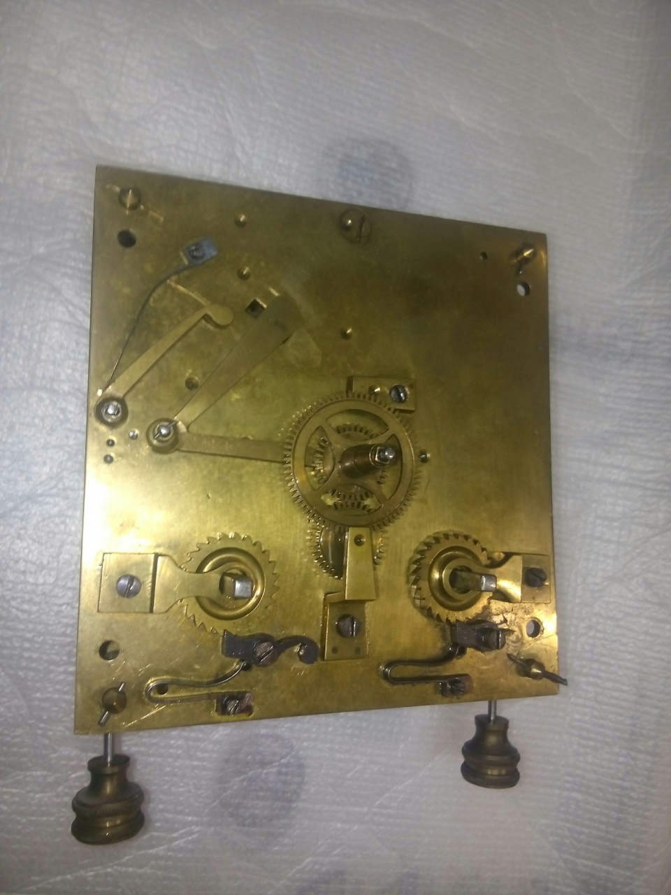 Я все не мог вспомнить, где видел подобный кронштейн. Фото не помню чьего комплекта, у меня такой же мех, для себя сохранил фото. Кронштейн похожий, но "перевёрнутый". Крепления снизу. Т-образная планка на маятнике, технологические отверстия, крепления платин... Схожесть счетного колеса... Мост анкерной вилки, да, напрочь другой. На молоточек не смотрим - он не родной, на моем мехе другой. В общем, ни на что не претендую... за своё надеюсь. Кстати, Татьяна, кронштейн и полка на четвёртом фото в первом сообщении не такая. Крепления по бокам. |