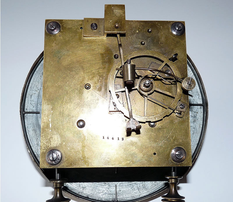Корпуса в стилистике начала-середины 1870-х гг. По двум винтам мне вспомнились еще вот эти механизмы, может быть это более ранние версии (я бы их отнес к 1860 гг) =)) Помимо винтов, из общего - молоточки, заостренная форма концов зашплинтованных стоек (только они установлены наоборот). Большая часть представленных Вами механизмов, судя по анкеру, использовалась с короткими маятниками, вероятно, в корпусах - шайбах и подобных. Соответственно и нет крепления к циферблату, ведь в таких корпусах механизм крепится к деревянному корпусу прижимными "лапками". |