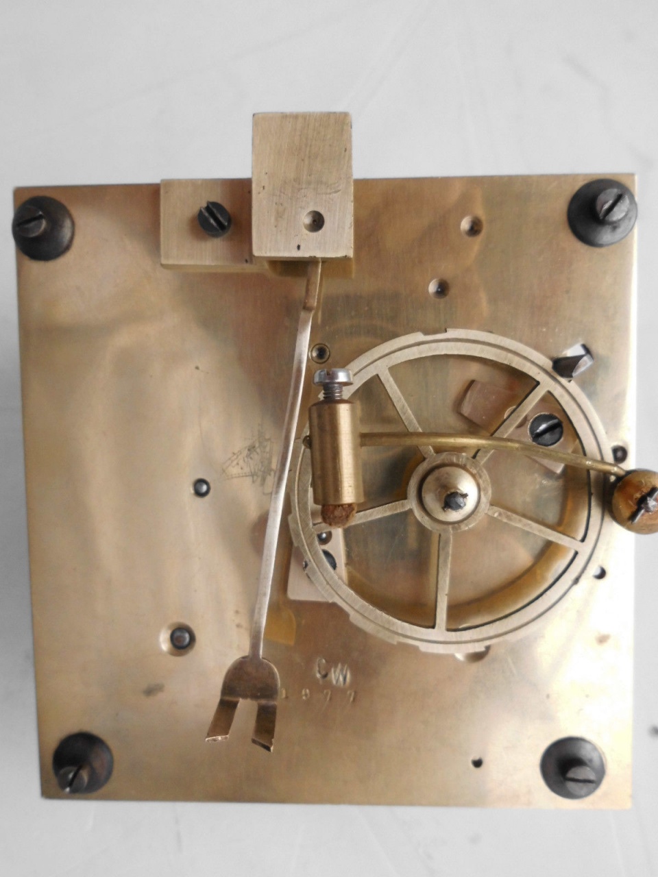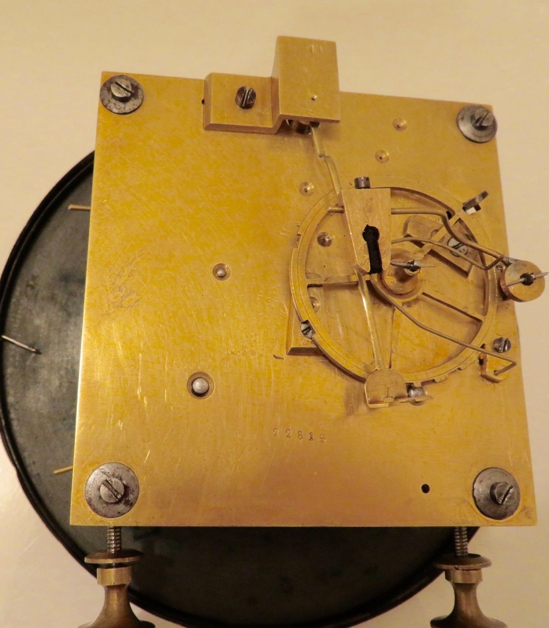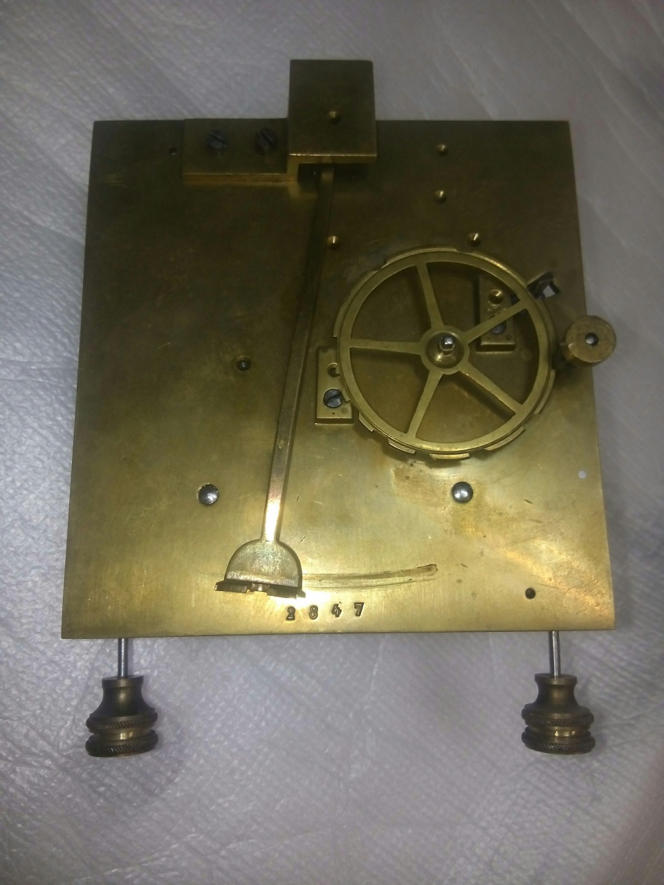 Кроме неправильной накладочки/моста, здесь другие посадочные отверстия, есть демпферная пластинка и отсутствуют технологические отверстия, которые есть на задней платине у других механизмов. При этом, если бы не шрифт, я бы отнесла этот механизм к ранним Mauthe. Вот все картинки этого механизма: Вложение 2580954Вложение 2580955Вложение 2580956Вложение 2580957 Кстати, кронштейн похож на маутевский. |