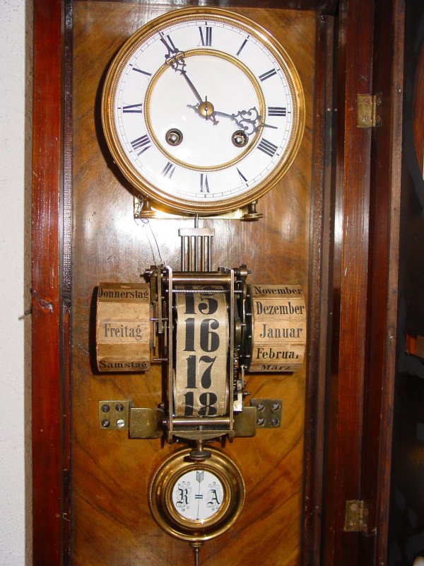 Татьяна, в 19 номере DUZ за 1879 год есть статья о сравнении новых календарных часов производства фирмы C.Schott in Furtwangen выполненных по системе Patent Hummel с календарными часами от Gebruder Wilde. Описан принцип действия того и другого механизма, внешний вид, плюсы и недостатки. По описанию это именно они. Помимо прочего в качестве недостатков указано, что в часах по системе Hummel даты надо переводить вручную (из-за чего бумага пачкается), а не ключом через корпус, как у GW; шрифт мельче - из-за расположения цифр и недель в ряд, а не один над другим, как у GW, у часов по системе Hummel цифры находятся за стеклом с окантовкой золотой краской, а у GW за красивой резной доской и тп. Вот статья полностью: https://books.google.ru/books?id=Pzp...page&q&f=false Нашлось и описание патента Адольфа Гуммеля в 17 номере DUZ за этот же год: https://books.google.ru/books?id=Pzp...page&q&f=false Любопытно узнать, что это за Carl(?) Schott в Фуртвангене. С уважением, Олег |