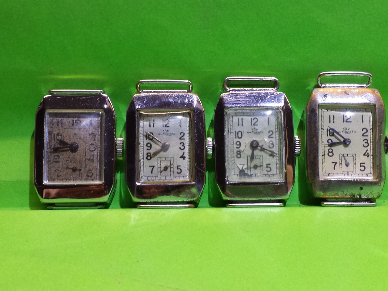Недавняя находка. Луч для масштаба. Выпуск 2-41. Есть куда руки приложить,но все в оригинале и в рабочем состоянии. Это один из самых "загадочных" советских калибров. Очень мало достоверной информации,или я не нашел. Фактически это переформатирование К-43 в модный прямоугольный формат. Баланс и барабан от Киряка точно. Насчет колесной системы пока не скажу. Интересная компоновка - первый раз вижу верхний мост на стойках в наручном мехе,как у будильника. Забавно ! Но,фактически это первый мех собственной разработки в Союзе, пусть и на базе Хемпдена-Дюбера или К-43. Так и Марк Гордон полагает. Я покопал инфу ,много не нашел,но в сети есть несколько вариантов лого на циферблатах "1ГЧЗ" и "МТП железнодорожного р-на Москва" . Что такое МТП - гадаю только. Такая же маркировка попадается и на мостах,хотя бывают и "голые" мосты,без маркировки. Встречал обозначение Кирпичика как Тип-17, но откуда оно взялось,не знаю,не нашел источника. Выпускался, насколько мне известно, в 1939-41 гг. Сколько сделано, не знаю,но не так мого,судя по редкости. Вот все пока. Прошу помощи коллег ,наверняка ведь интересовались.