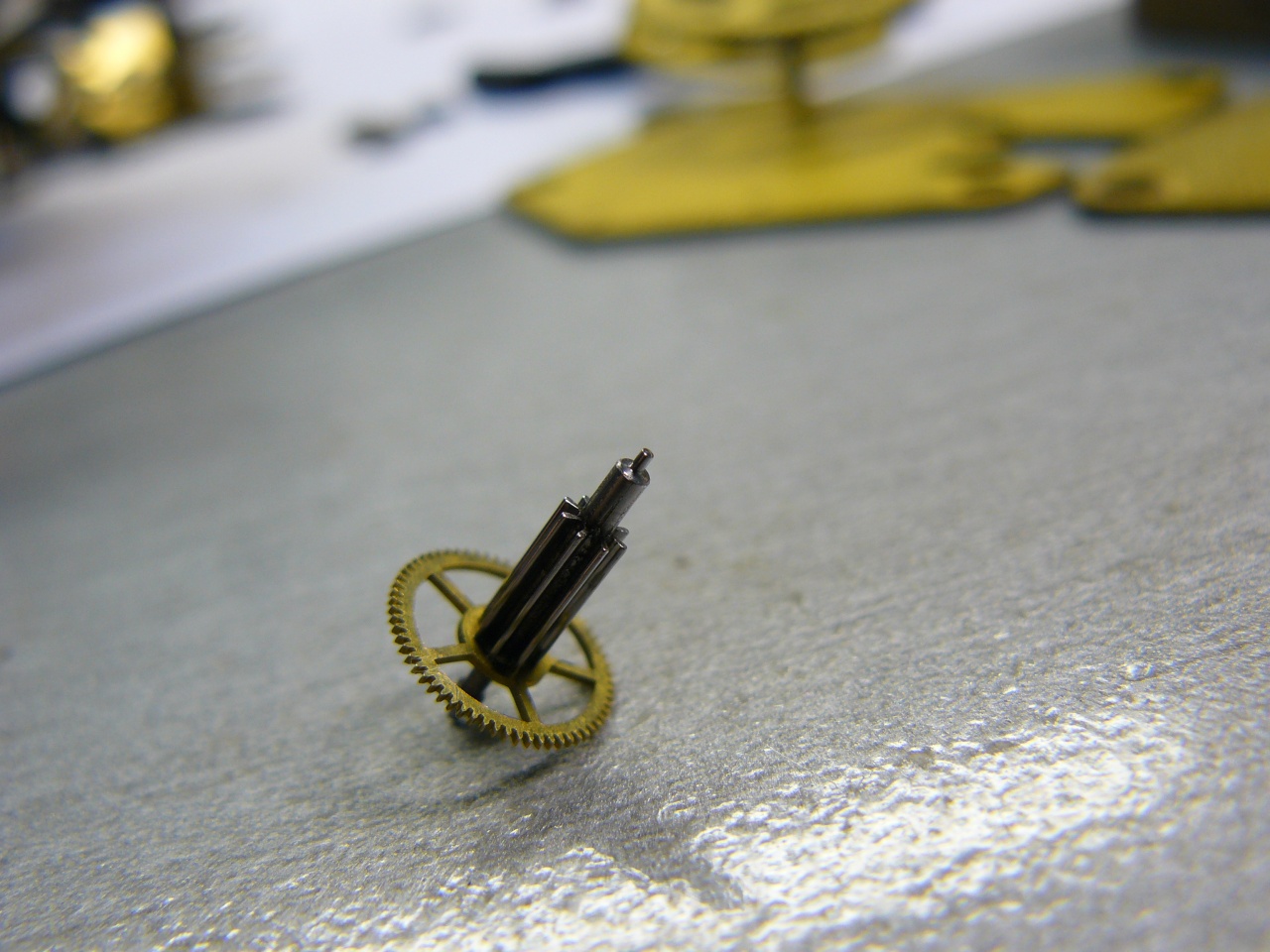 Еще если механизм не регулярно обслуживался стоит обратить внимание на ось баланса часто она вытачивается об камень и её нужно менять или узел баланс спираль на новый я лично при ремонте этого механизма почти всегда меняю секундное колесо если нет колеса в наличии его надо выпресовать с оси и перевернув на 180 градусов запресовать тем самым изношенная часть зубьев не будет захотить в зацепление с анкерным колесом,отрегулировать зазор между секундным колесом и трибом анкерного колеса.