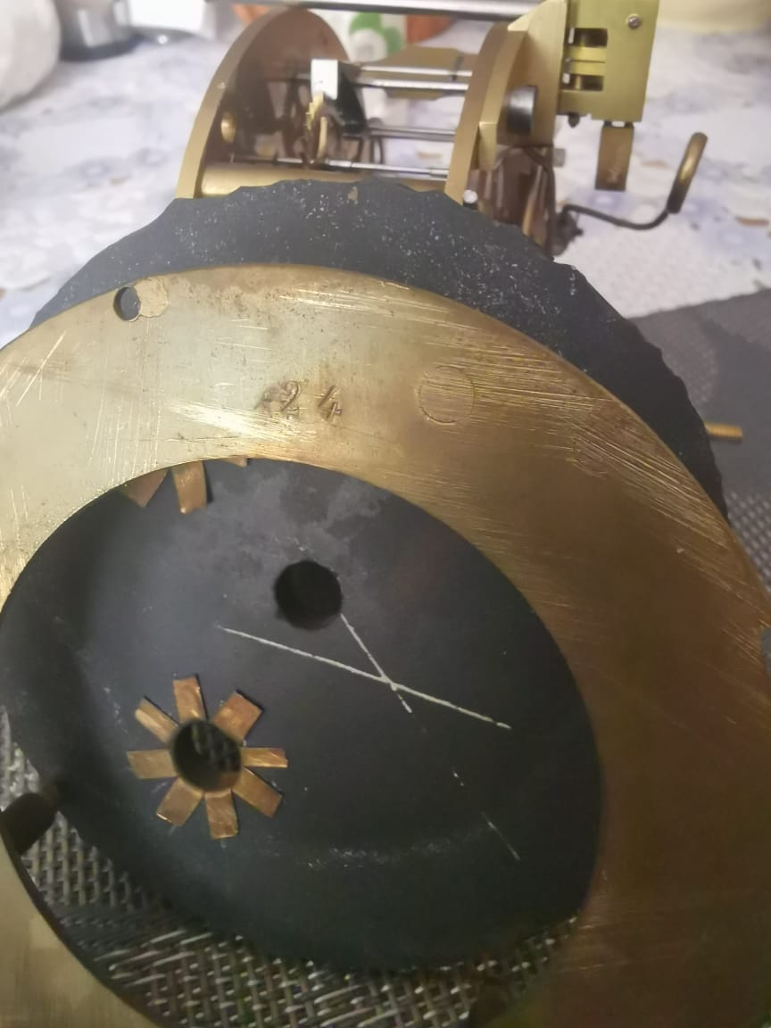 На циферблате(с обратной стороны) никаких цифр/клеймения нет, только "крест", вроде мелом сделан. Циферблат изготовлен из камня, на ободе крепления циферблата (отдельная часть) выбит номер 124, соответствует номеру на механизме и на переднем (со стороны стекла) ободе крышки, и круг, похожий на непробитое клеймо. На механизме, с внутренней стороны, выбита "загибулина"(???). На "регуляторе" выбиты буквы и цифры.Вложение 3165847 Вложение 3165848Вложение 3165849Вложение 3165850Вложение 3165851 Вложение 3165852