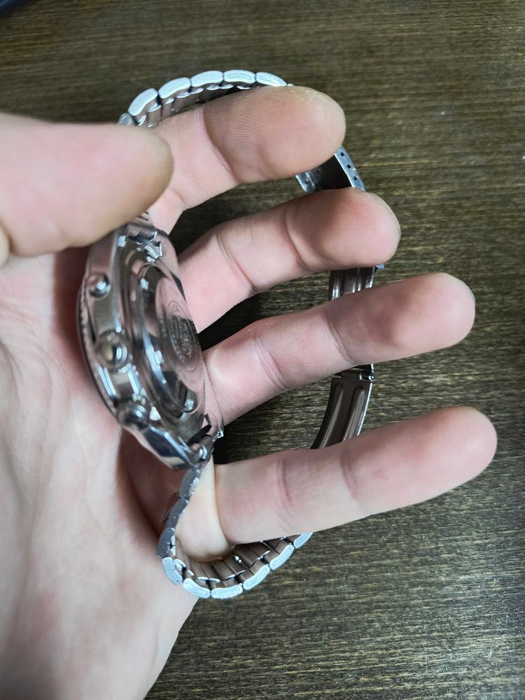 относительно свежая модель с оригинальным оформлением. Достались без браслета, а у меня как раз был визуально подходящий к этим часам. Сначала думал каучук заказать, но посмотрел: обыграть нужно переход с 19мм крепления в часах на ширину ножек часов и решил подточить стальной браслет))) В итоге вышло вполне приемлемо для повседневных |