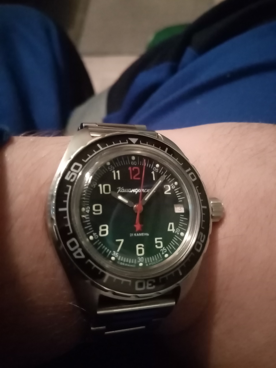 А я, товарищи, после возврата латунных решил взять стальные командирские в 02 корпусе. Упорство и слабоумие;). Есть цифровые касио, но вот хотел Восток на каждый день и все тут. Корпус грубо обработан, сатинирование волнами по боковой грани, заводная головка страшненькая, метки на безеле чуть чуть не совпадают, маленькая выбоинка на ушке. Да и пофиг. Зато часы идут очень стабильно +11сек. Цифер радует, напечатано все очень аккуратно. Короче я доволен, хожу на работе и как дурачек смотрю время каждые 15 минут. Есть у ракеты часы "Русский код", которые идут наоборот.Вот у востока вся линейка Русский код, настоящий. Где то кривовато, где то чуть косякнулии и забили болт... Главное чтобы работало. Конечно надо бы подтянуть ОТК, пусть прайс поднять процентов на 20. Чтобы механизмы хотя бы без брака... Ну а я лично, можете назвать меня дураком, к лету возьму ещё новую Амфибию 71066а.Хотя... Может на новый год:)Вложение 3495842