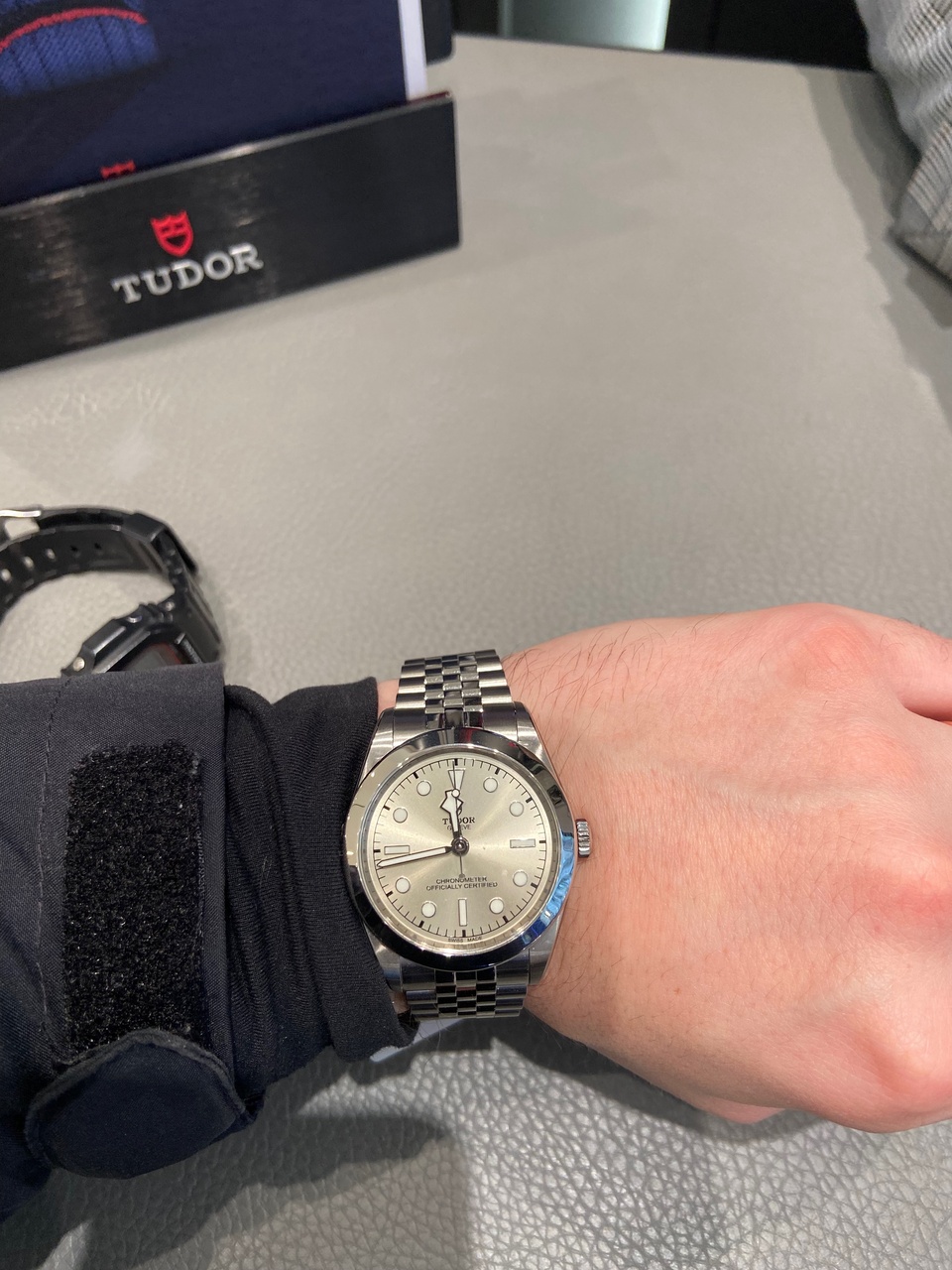 тюдор по началу не нравился, сейчас его разглядел, и предпочел бы его. он конечно своеобразный, и немного фриковский, а дальше уже как сидят. качественный продукт. брайт — скорее всего, наряднее, а тюдор неформальнее. мне кажется, если бы брайту добавить толщину безелю +0,5–1 мм внутрь, пустое место на цифере есть, часы бы не проиграли. но это имхо, не люблю тонкие безели на кэж |
