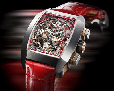 Новая модель GTS Grand Tourbillon Sport (Ref. ARTGTS), которая была представлена швейцарской часовой компанией ANTOINE PREZIUSO в прошлом месяце на выставке Geneva Time Exhibition 2012, пополнила коллекцию бренда Haute Horlogerie "Art of Tourbillon". Как и следует из названия новинки, благодаря своему дизайну, стала самыми спортивными часами в этой эксклюзивной коллекции. В частности, это подтверждает аэродинамическая форма корпуса, напоминающая силуэт гоночного автомобиля, и красные копьевидные скелетонизированные стрелки, выполненные в стиле стрелок спидометра.