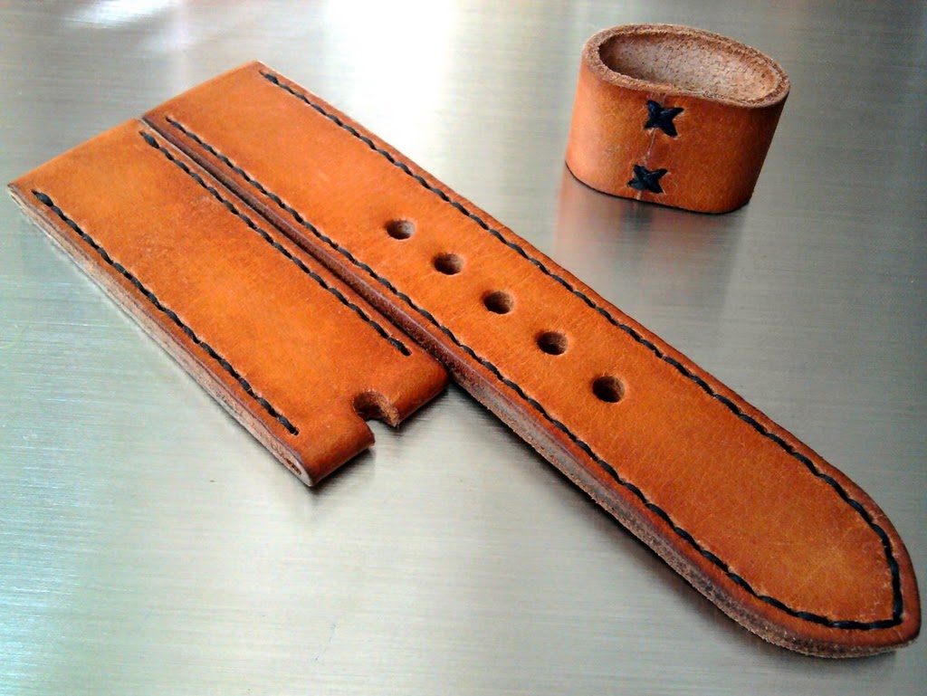 It is great to be here and have a privilege to share some of my work with you - Thank you!:) Feel free to comment both in russian or english of course. Hope you enjoy reading my thread! I also hope to update from time to time this thread with new work. Moon Collector One of my favorite straps that truly stimulates imagination. It was a huge pleasure for me to put idea from my mind into reality. Length: 132/80 mm Width: 24 mm Thickness: +/- 5 mm Signed on the back side. Stitched moon on the loose keeper. http://lh5.ggpht.com/_b8fazWpjXtY/S-.../DSC_0110b.jpg http://lh3.ggpht.com/_b8fazWpjXtY/S-.../IMG_8810b.jpg Barbarossa Now something for people who love water. Barbarossa is actually cut along the edge (you can see it on the picture), jus like a ripped sail, and stitched using method which is used to repair ripped sails. Length:132/85 mm Width: 26 mm Thickness: +/- 5 mm Signed on the back side. http://lh5.ggpht.com/_b8fazWpjXtY/S-.../DSC_0086b.jpg http://lh4.ggpht.com/_b8fazWpjXtY/S-.../DSC_0082b.jpg Wu Xing - Fire Feng Shui uses the theory of Wu Xing - the five elements theory. This strap represents the Fire element. Length: 130/86 mm Width: 24 mm Thickness: +/- 4.5 mm Signed on the back side. Comes with two loose keepers with characteristic fire design, also both with flame stitched. http://lh6.ggpht.com/_b8fazWpjXtY/S-.../DSC_0075b.jpg Freedom For those who would love to fly. On the picture you can see eagle head - eye and beak, stitching similar to wings shape. Length: 132/85 mm Width: 24 mm Thickness: +/- 5 mm Signed on the back side. http://lh5.ggpht.com/_b8fazWpjXtY/S-.../DSC_0035b.jpg Bravery For brave. Both watch and your wrist with this strap look amazing. Length: 141/85 mm (it has to be longer as shield enlarges your wrist) Width: 24 mm Thickness: +/- 5 mm, shield +/- 4 mm Signed on the back side. Stitched Maltese cross on loose keeper which symbolizes 8 points of courage. PAM111 and watches with length between the lug holes 50 mm or shorter will fit on shield. http://lh4.ggpht.com/_b8fazWpjXtY/S-.../DSC_0009b.jpg http://lh6.ggpht.com/_b8fazWpjXtY/S-.../DSC_0142b.jpg http://lh3.ggpht.com/_b8fazWpjXtY/S-.../IMG_8896b.jpg http://lh5.ggpht.com/_b8fazWpjXtY/S-.../DSC_0007b.jpg Mind of Steel Length: 132/85 mm Width: 22 mm Thickness: +/- 5mm Signed on the back side. Dyed with old traditional methods. Stitched 'M' (first letter of Mind of Steel) on the loose keeper. http://lh4.ggpht.com/_b8fazWpjXtY/S-...IMG_8553ab.jpg Engineer Programmers and other people who are kind of IT would love it. Length:135/84 mm Width: 24 mm Thickness: +/- 4 mm Signed on the back side. http://lh5.ggpht.com/_b8fazWpjXtY/S-...8694nologo.jpg Synergy Truly elegant strap. Length: 133/86 mm Width: 24 mm Thickness: +/- 5 mm Signed on the back side. http://lh6.ggpht.com/_b8fazWpjXtY/S-.../DSC_0047b.jpg http://lh5.ggpht.com/_b8fazWpjXtY/S-.../DSC_0049b.jpg Ace of Spades Not only for gamblers. Length: 130/85 mm Width: 24 mm Thickness: +/- 5 mm Signed on the back side. http://lh6.ggpht.com/_b8fazWpjXtY/S-.../DSC_0057b.jpg Grizzly Engraved grizzly paw. Length:133/87 mm Width: 24 mm Thickness: +/- 5 mm Signed on the back side. http://lh4.ggpht.com/_b8fazWpjXtY/TN...IMG_0885cc.jpg Hero Nothing more nothing less. Length:149/86 mm Width: 24 mm Thickness: +/- 5 mm Signed on the back side. http://lh4.ggpht.com/_b8fazWpjXtY/TN...IMG_0874cc.jpg http://lh4.ggpht.com/_b8fazWpjXtY/TN...s640/holes.jpg Eclipse Brown combined with black finish and stitching. Length:144/84 mm Width: 24 mm Thickness: +/- 4,5 mm Signed on the back side. http://lh4.ggpht.com/_b8fazWpjXtY/TN...IMG_0740cc.jpg Oath Classic. Length:140/89 mm Width: 24 mm Thickness: +/- 4,5 mm Signed on the back side. http://lh4.ggpht.com/_b8fazWpjXtY/TN...IMG_0888cc.jpg Titan's Might Classic. Length:137/87 mm Width: 24 mm Thickness: +/- 5 mm Signed on the back side. http://lh5.ggpht.com/_b8fazWpjXtY/TN...IMG_0877cc.jpg Lava Black strap with orange stitching seem to be a great combo. Length:143/84 mm Width: 24 mm Thickness: +/- 5 mm Signed on the back side. http://lh3.ggpht.com/_b8fazWpjXtY/TN...IMG_0880cc.jpg Hydra One and only strap which allows you to wear a buckle near a watch. Length: 279 mm Width: 24 mm Thickness: +/- 5 mm Signed on the back side. http://lh3.ggpht.com/_b8fazWpjXtY/TO...IMG_0900cc.jpg http://lh6.ggpht.com/_b8fazWpjXtY/TO...IMG_0839cc.jpg Oracle E.g. for PAM112 or other watches with 50mm distance between top and bottom lug hole. Thats a really large strap for large wrists:) Length: 266 mm Overal width: 86 mm Width: 24 mm Thickness: +/- 5 mm Signed on the back side. http://lh5.ggpht.com/_b8fazWpjXtY/TO...IMG_0893cc.jpg Gravitation Imagine that the little hole is a planet, and your watch is a star. Will work for 18,5cm wrist size with watch that distance between lug holes is 50mm. Length:137/88 mm Width: 24 mm Thickness: +/- 5 mm Signed on the back side. http://lh6.ggpht.com/_b8fazWpjXtY/TN...IMG_0647cc.jpg Arrow of Destiny Unique design & stitching combined with blue color. Length:135/88 mm Width: 24 mm Thickness: +/- 5 mm Signed on the back side. http://lh6.ggpht.com/_b8fazWpjXtY/TN...IMG_0660cc.jpg Grizzly Engraved grizzly paw. Length:133/87 mm Width: 24 mm Thickness: +/- 5 mm Signed on the back side. http://lh4.ggpht.com/_b8fazWpjXtY/TN...IMG_0885cc.jpg Lava II Black & red = wow Length:130/72 mm Width: 24 mm Thickness: +/- 5 mm http://4.bp.blogspot.com/-onFYhNRbNp.../IMG_1577b.JPG Abyss Long unique strap. Length:148/86 mm Width: 24 mm Thickness: +/- 5 mm Signed on the back side. http://lh3.ggpht.com/_b8fazWpjXtY/TN...IMG_0676cc.jpg Whispering Forest Big tree here and the skull made from branches Length: about 135/80 Width: 24mm Thickness: 4mm Signed on the back side. https://lh3.googleusercontent.com/_b.../DSC_0021b.jpg Buckles: http://img69.imageshack.us/img69/8593/img8717a.jpg Moon Dust & Sandstorm buckles: https://lh6.googleusercontent.com/-R...0/IMG_1563.JPG http://3.bp.blogspot.com/_b8fazWpjXt.../IMG_4946b.jpg Due to back side, buckles fit great o