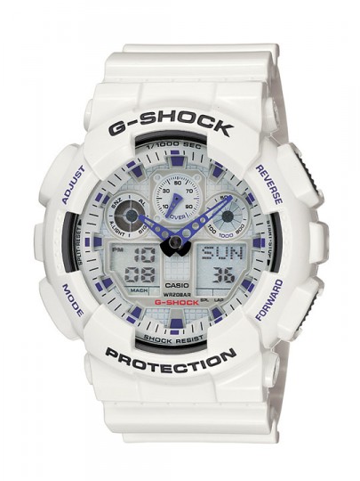 Особенности включают большие боковые кнопки с противоскользящей отделкой, ударопрочность, антимагнитную защиту эквивалентную стандарту ISO 764, автоподсветку, всемирное время с индикацией по 48 городам, 1/100 секундный хронограф, четыре будильника и почасовой сигнал времени. Модель доступна в черном (Ref. GA100-1A4), белом (Ref. GA100A-7A) и желтом (Ref. GA100A-9A) цветах. MSRP составляет $99. Источник: http://forums.timezone.com/index.php...=5046200&rid=0 |