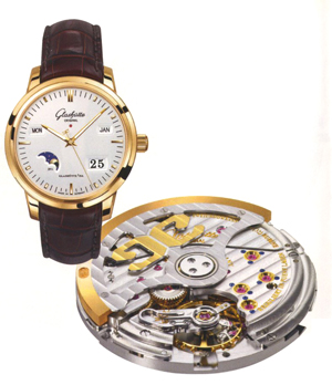 Eterna Калибр 3030 МЕХАНИЗМ: автоматический; ротор на шарикоподшипниках; устройство останова секундной стрелки; запас хода 48 часов; диаметр 30 мм; толщина 4,4 мм ФУНКЦИИ: часы, минуты, секунды; большое окно даты (быстрая коррекция) Glashutte Original Калибр 100 Наряду с созданием интересных часовых механизмов со сложными элементами, от сплит-хронографа до турбийона, мануфактура активно занималась разработкой нового базового автоматического механизма, в котором изначально предусматривалась возможность модификации и многоцелевого использования. В результате получился Калибр 100, который в комбинации с соответствующими модулями можно с успехом применять в целом ряде моделей с календарными функциями. Glashutte Original Калибр 100 МЕХАНИЗМ: автоматический, скелетонированный ротор; механизм установки секундной стрелки «на нуль», регулируется кнопкой на корпусе; запас хода 55 часов; диаметр 31,15 мм; толщина 7,1 мм; камни -59; баланс винтовой с 18 регулировочными винтами из золота; частота колебаний 28 800 полуколебаний в час; спираль плоская ФУНКЦИИ: часы, минуты, секунды, панорамный указатель даты ПРИМЕЧАНИЯ: детали механизма идеально отделаны, края снабжены фасками, стальные детали отполированы; ввинчивающиеся золотые шатоны, вороненые винты, зубчатые колеса покрыты двойной «солнечной» шлифовкой, мосты и кронштейны шлифованы в стиле «гласхюттенские полосы» РОДСТВЕННЫЕ КАЛИБРЫ: 100-01 (с указателем запаса хода); 100-02 (с вечным календарем); 100-03 (с панорамным указателем даты); 100-04 (с указателем фаз Луны); 100-05 (53 недели года); 100-06 (полный календарь, фазы Луны) Jaeger-LeCoultre Калибр 975 Новыми конструкциями Jaeger-LeCoultre - предприимчивой и инновативной мануфактуры из Ле Сантье - можно было бы заполнить целые тома. Но в этом обзоре мы остановимся на механизме Калибра 975, выпущенном в свет в 2004 году под не очень изящным названием «Autotractor». Современная конструкция со стабильным мостом баланса и керамическими шарикоподшипниками в роторе возвестила о начале новой эры часового производства. Jaeger-LeCoultre Калибр 975 МЕХАНИЗМ: автоматический; на центральной оси не требующий смазки ротор с керамическими шарикоподшипниками; запас хода 48 часов; диаметр 30 мм; толщина 5,7 мм; камни - 29; баланс винтовой с четырьмя грузовыми шайбами; частота колебаний 28 800 полуколебаний в час; спираль плоская; противоударная защита Kif ФУНКЦИИ: часы, минуты, секунды; отдельно переводимая часовая стрелка (для времени второго часового пояса); указатель «день/ночь» ПРИМЕЧАНИЯ: платина декорирована в стиле Perlage, мосты с закругленными краями A. Lange & Sohne Калибр L041.2 Гласхюттенская мануфактура в 2006 году удивила профессионалов, выпустив очень скромные на первый взгляд часы. Названные именем Рихарда Ланге, сына основателя фирмы, часы пробуждали воспоминания о моделях прошлого, созданных специально для летчиков. Сердцем модели стал дорогой претенциозный часовой механизм с характерной трехчетвертной платиной, которая ведет свое происхождение от хронографического механизма Datograph. A. Lange & Sohne Калибр L041.2 МЕХАНИЗМ: с ручным заводом; устройство останова секундной стрелки; запас хода 38 часов; диаметр 30,4 мм; толщина 6 мм; камни - 27, из них 2 в завинчивающихся золотых шатонах; баланс большой Glucydur с регулировочными эксцентриками; частота колебаний 21 600 полуколебаний в час; спираль собственного производства с запатентованным креплением (посредство